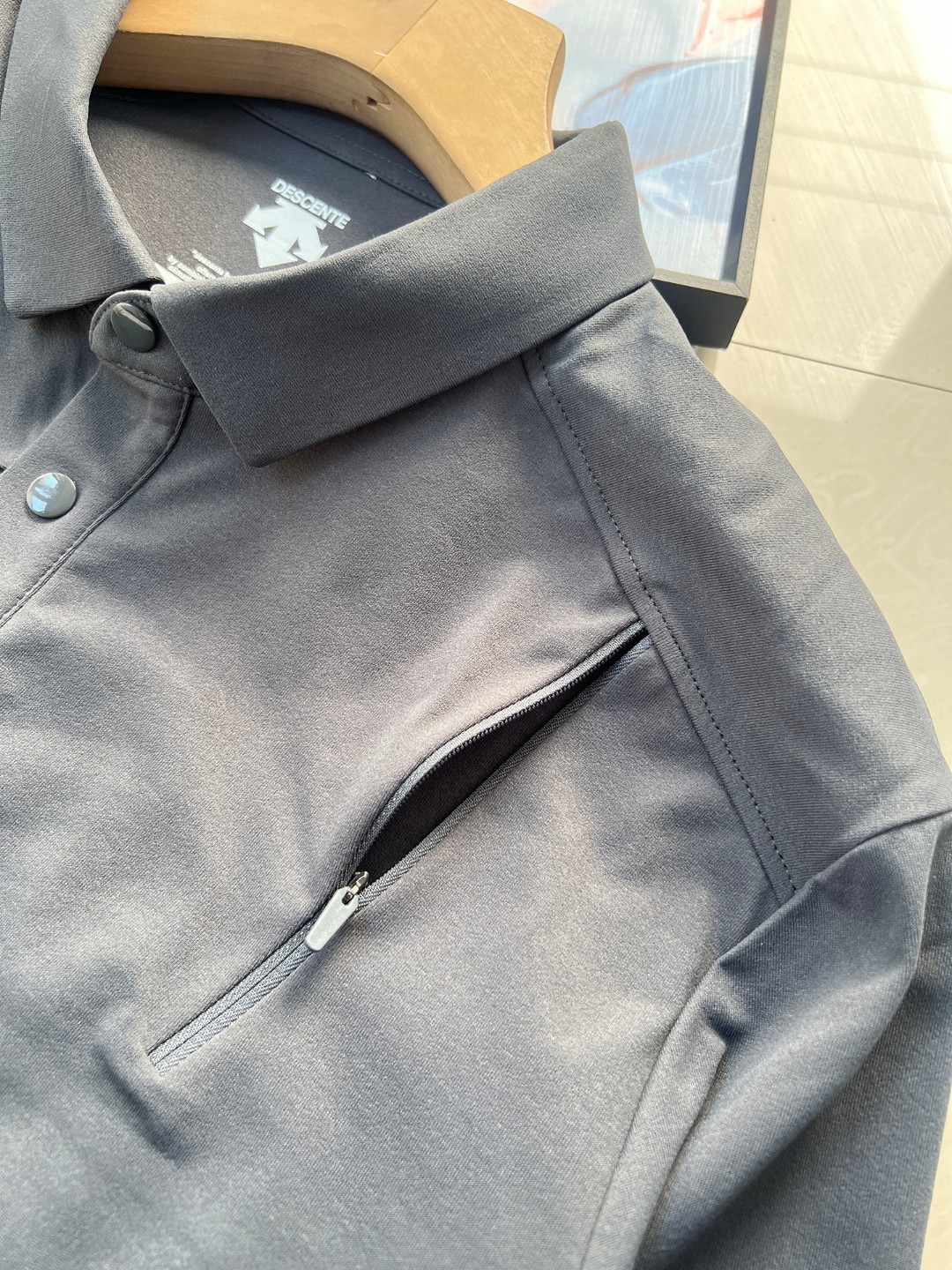 面料纱线的特殊组合配列,使肌肤的水分迅速转移至面料表面,从而释放在空气中达到速干的效果手感柔软上身版型立体!!