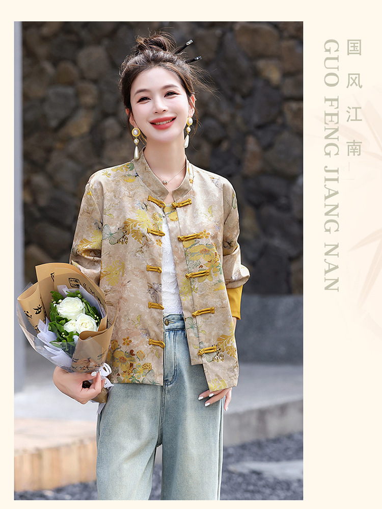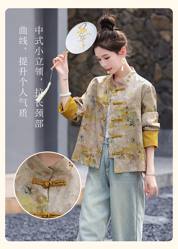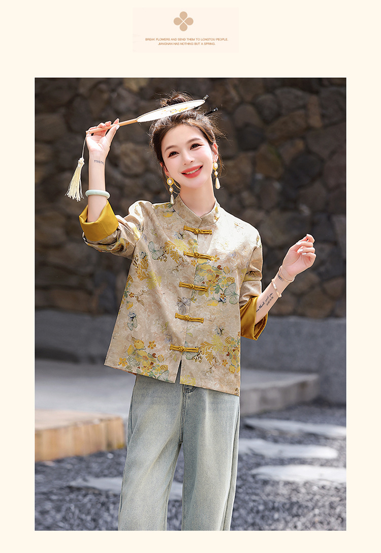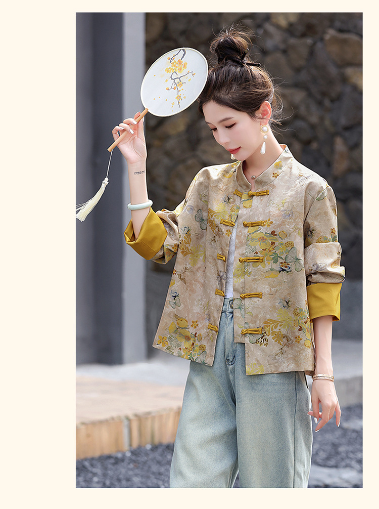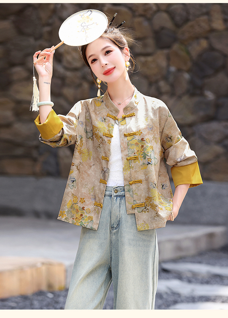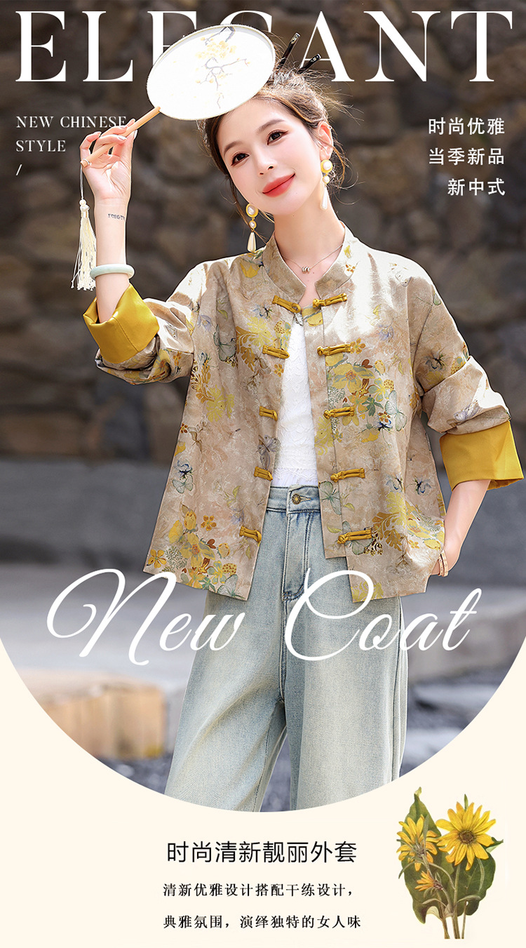 丁摩 新中式gu风唐装外套女春秋复古提花盘扣立领改良旗袍上衣5ZF-86119