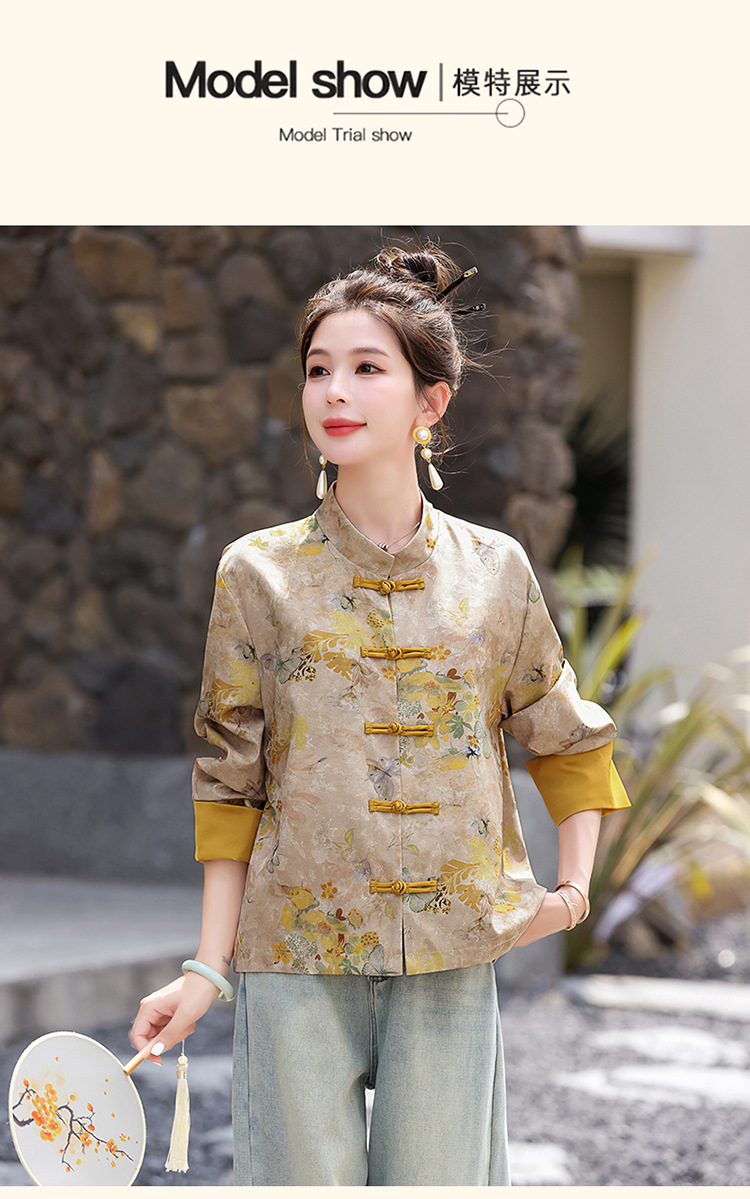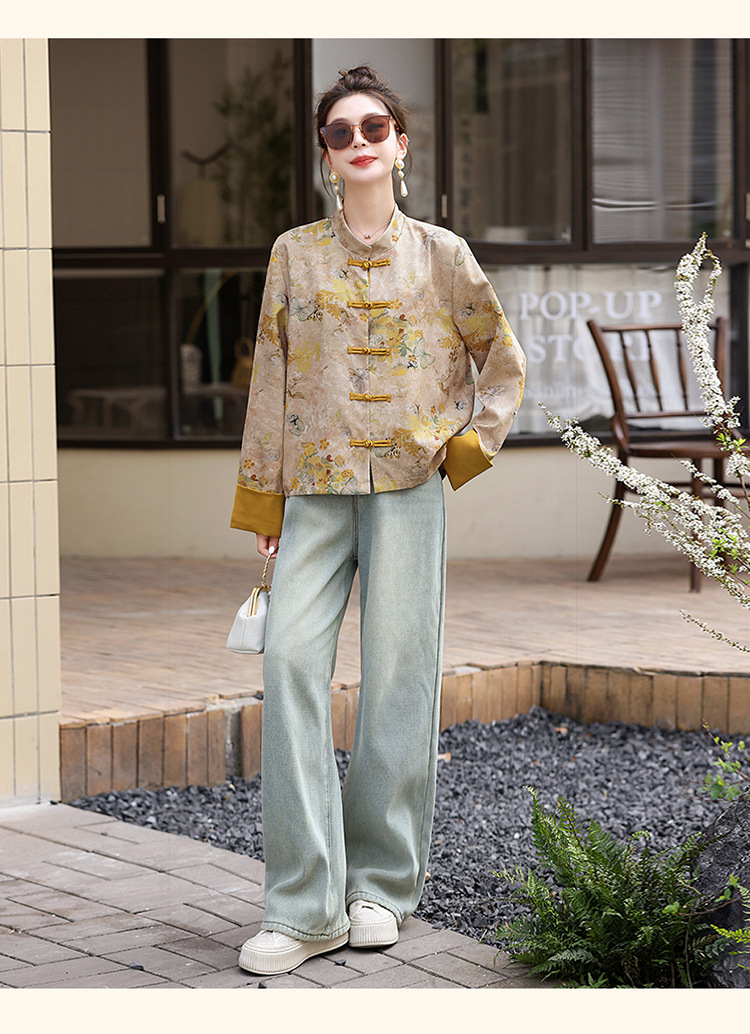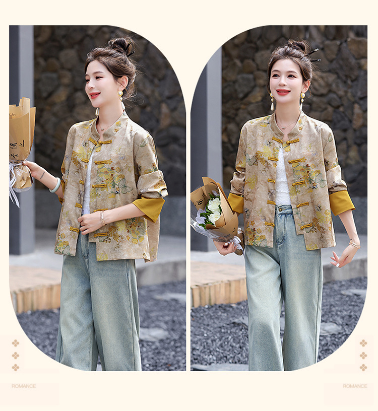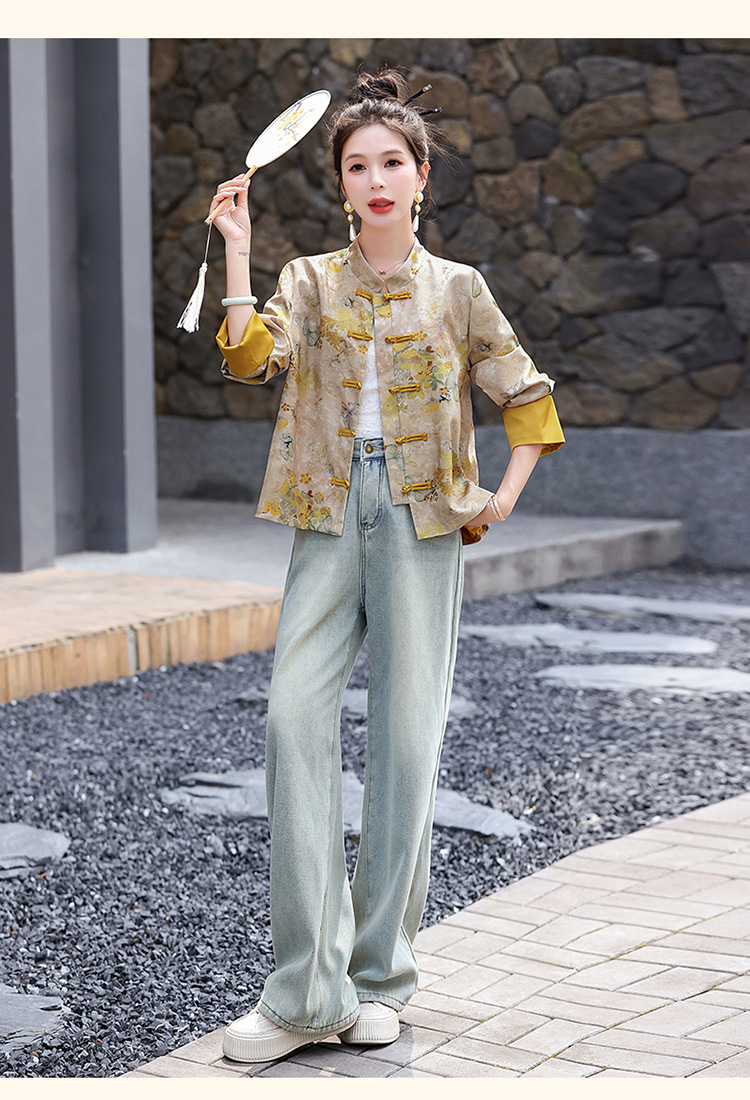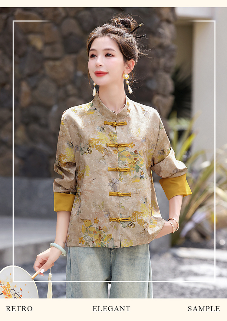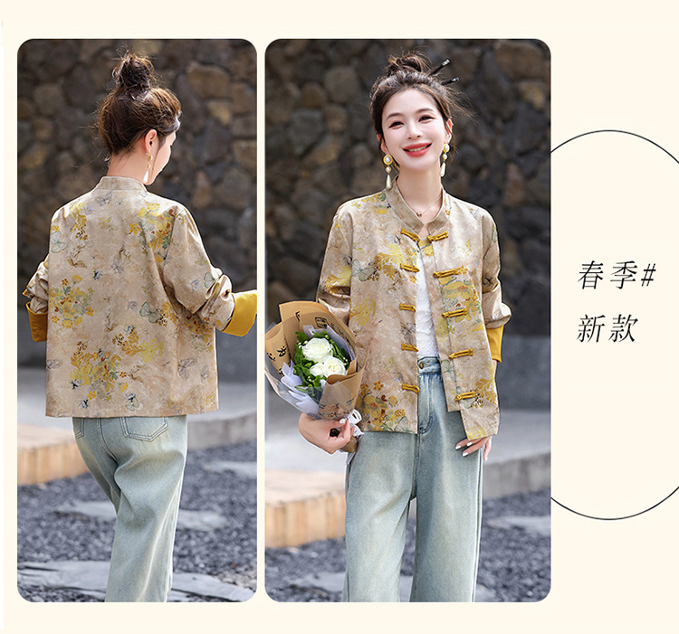 丁摩 新中式gu风唐装外套女春秋复古提花盘扣立领改良旗袍上衣5ZF-86119