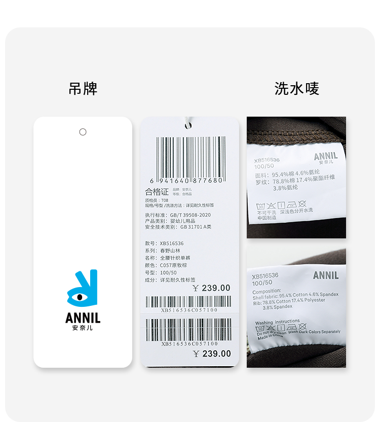 男童全腰针织单裤春季新款安奈儿童装实体店同款XB516536