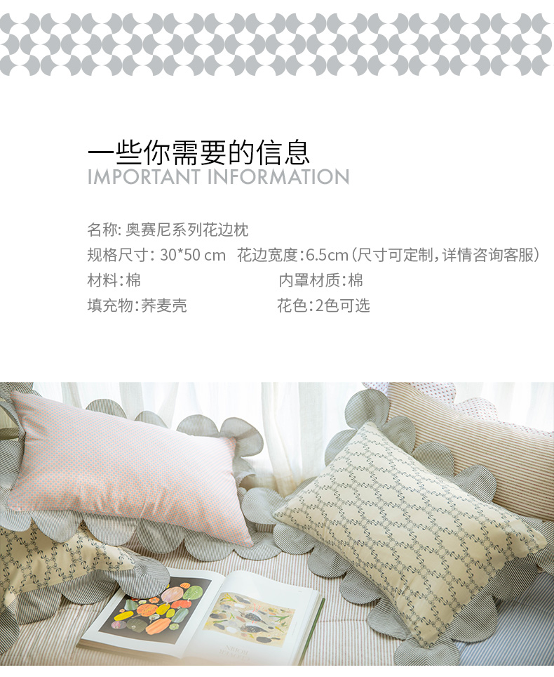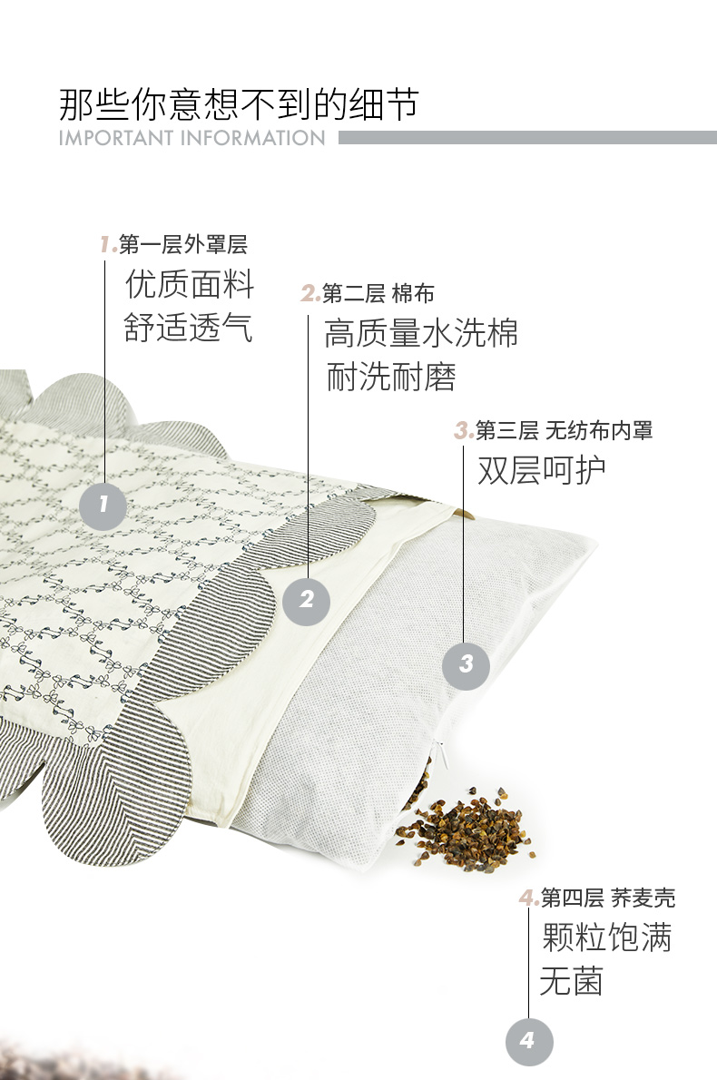 奥赛尼系列花边枕全荞麦壳纯棉颈枕