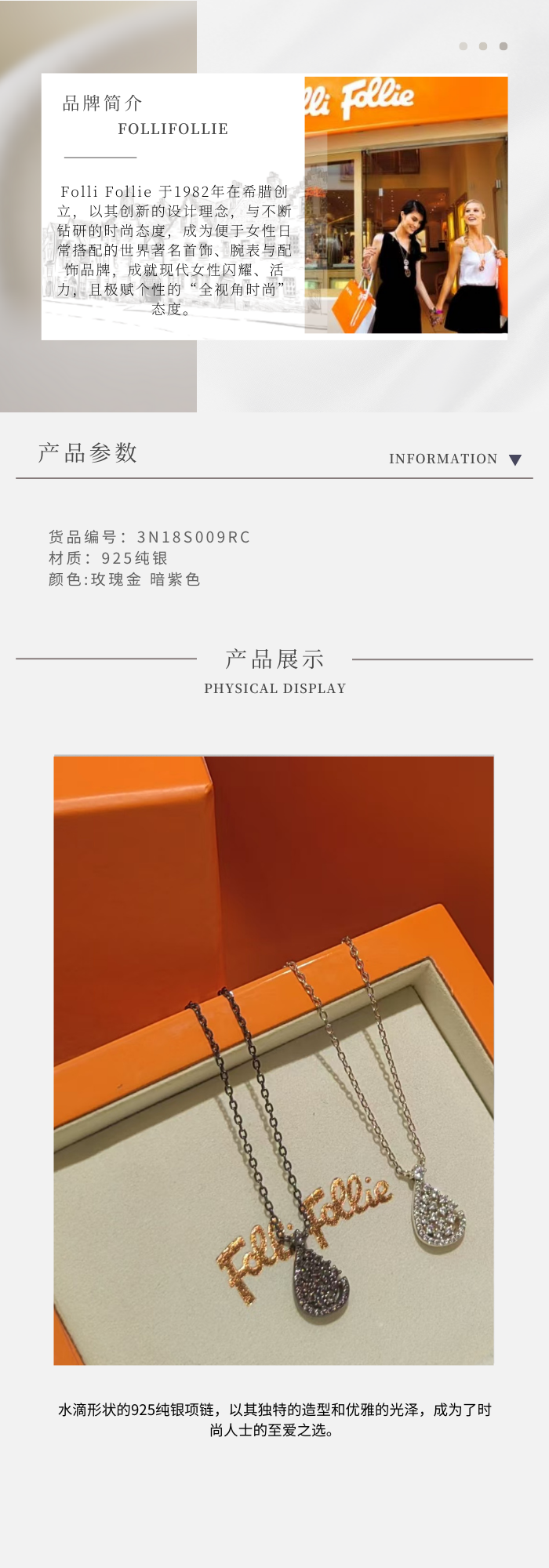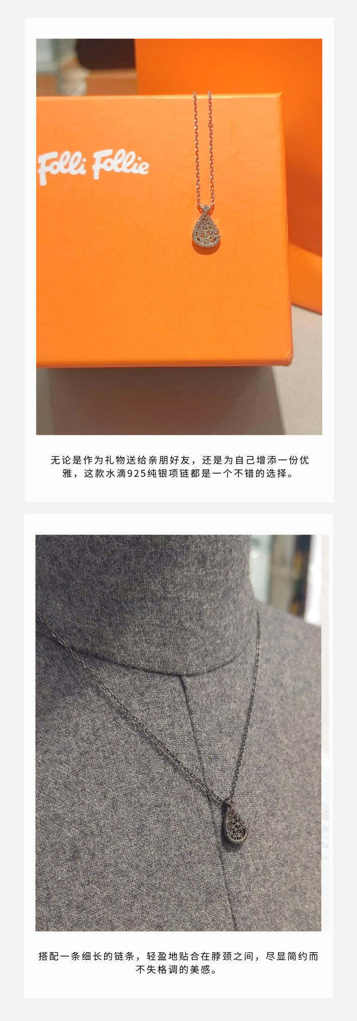 Folli Follie · 水滴型项链•925纯银•简约百搭款