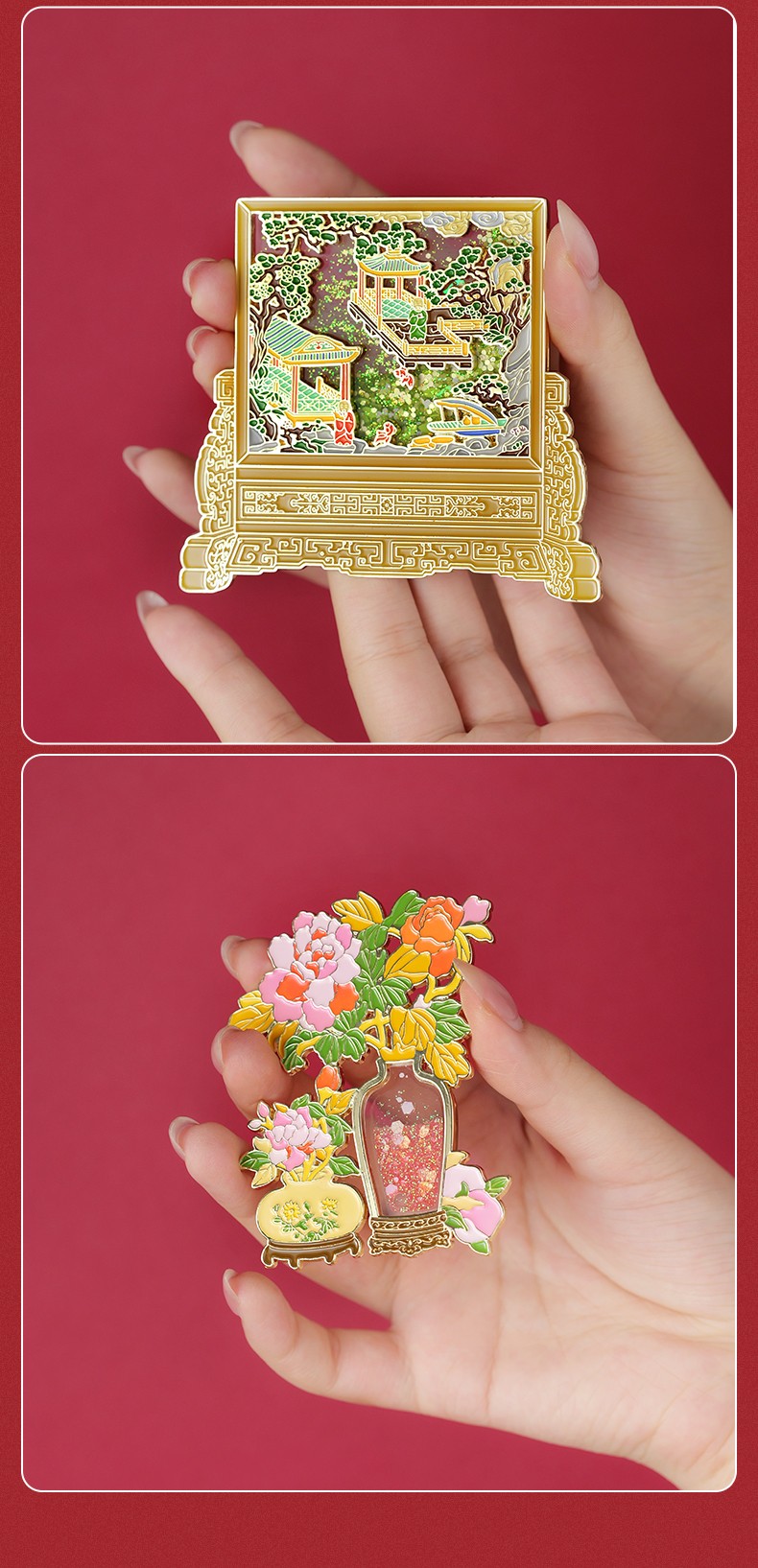故宫系列流沙冰箱贴 山水清音 金玉满堂 岁朝佳兆