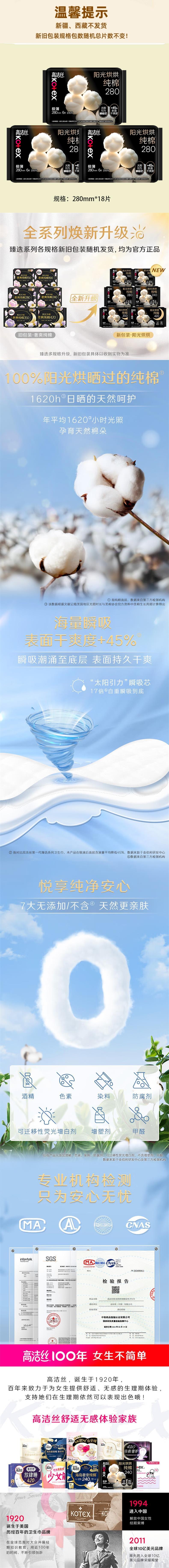 高洁丝 全新阳光烘烘纯棉日夜用卫生巾280mm6片*3包 JGS0HY6P3B