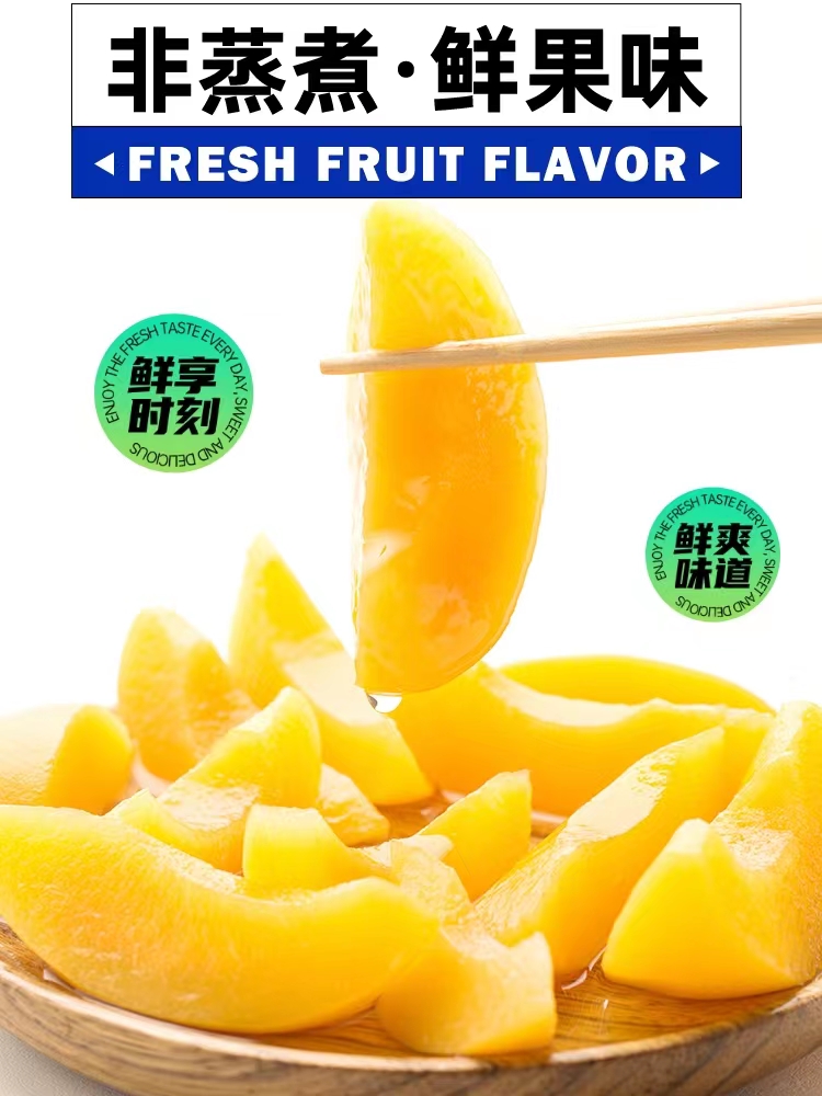 保持黄桃原本的味道,入口劲道,鲜爽!!!