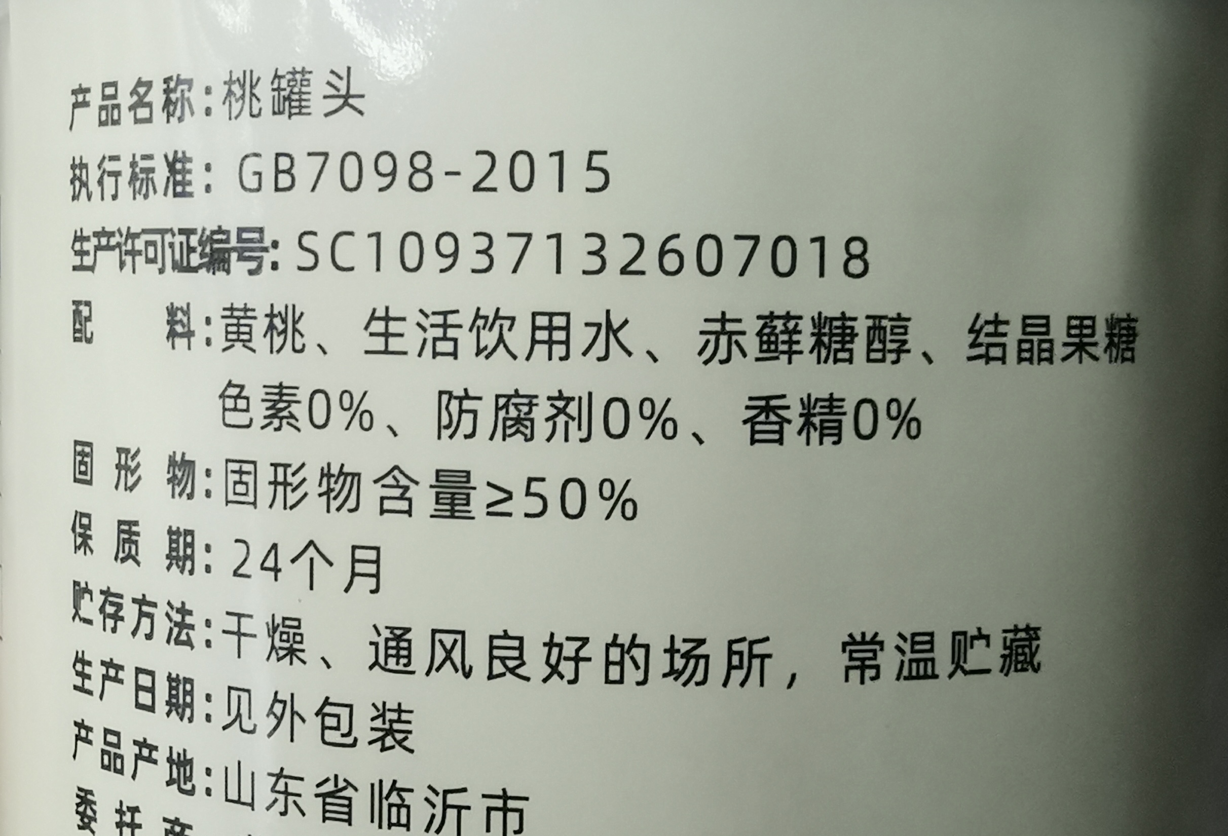 【配料】黄桃、生活饮用水、赤藓糖醇