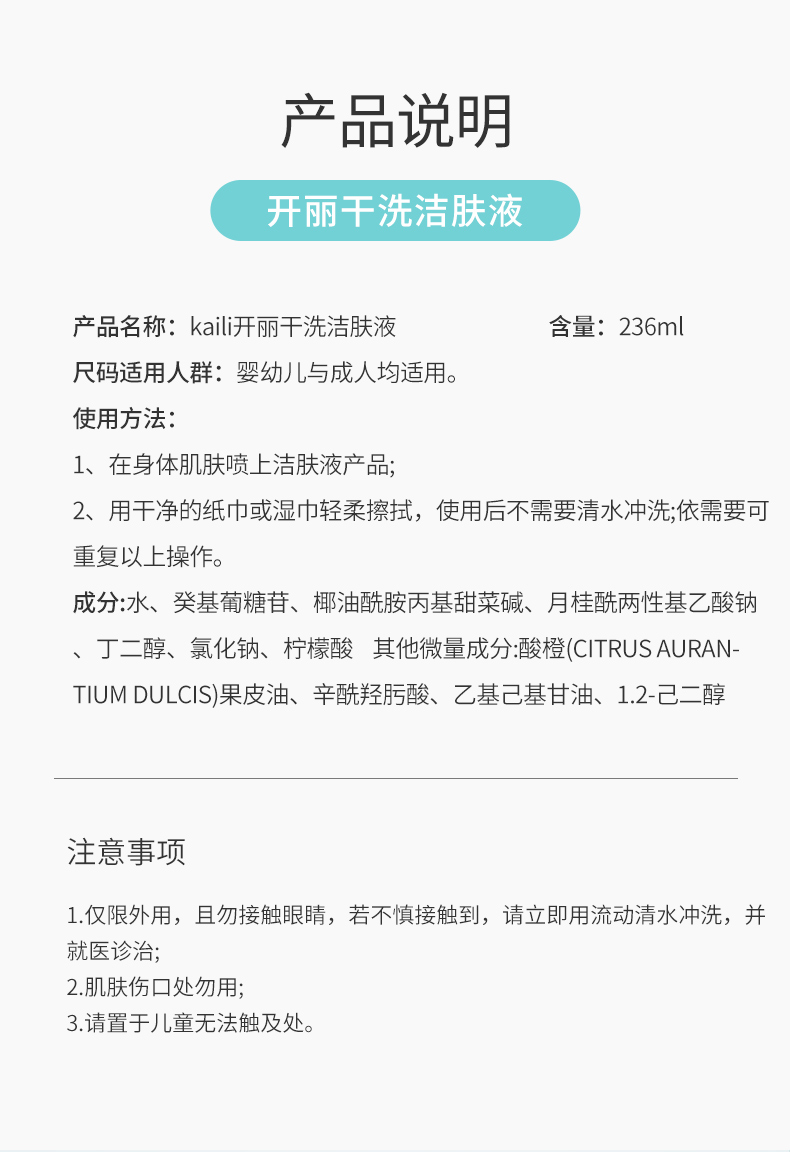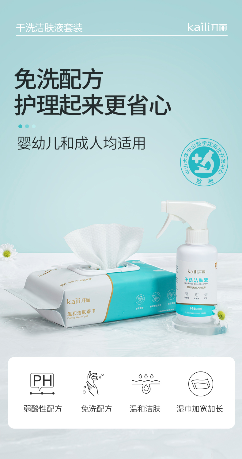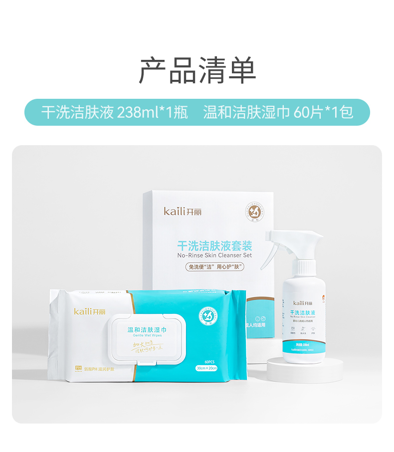 干洗洁肤液238ml/瓶+洁肤湿巾60片/包【医院同款】需线下调货,2-3天发货