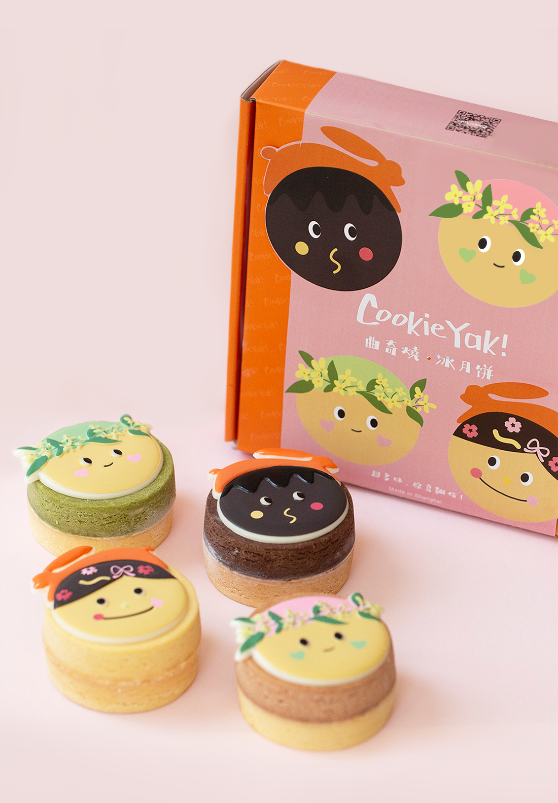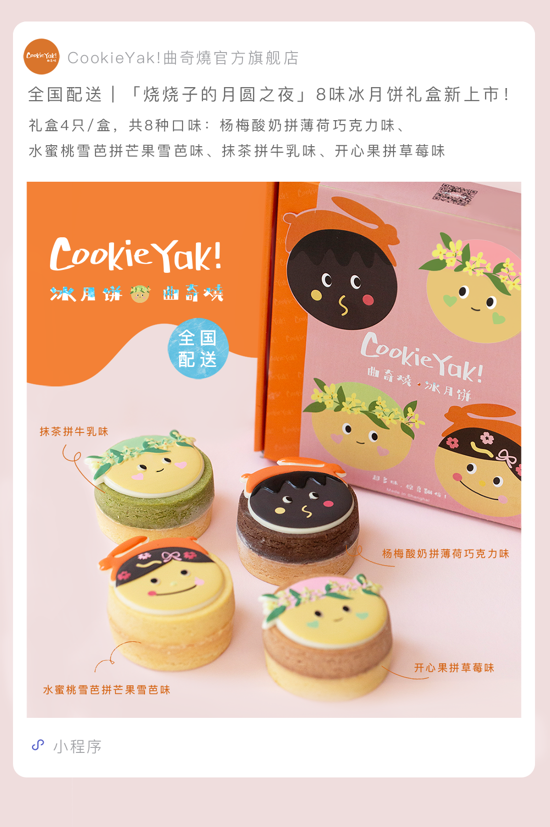 全国配送「烧烧子的月圆之夜」8味冰月饼礼盒|杨梅酸奶拼薄荷巧克力味、水蜜桃雪芭拼芒果雪芭味、抹茶拼牛乳味、开心果拼草莓味冰月饼