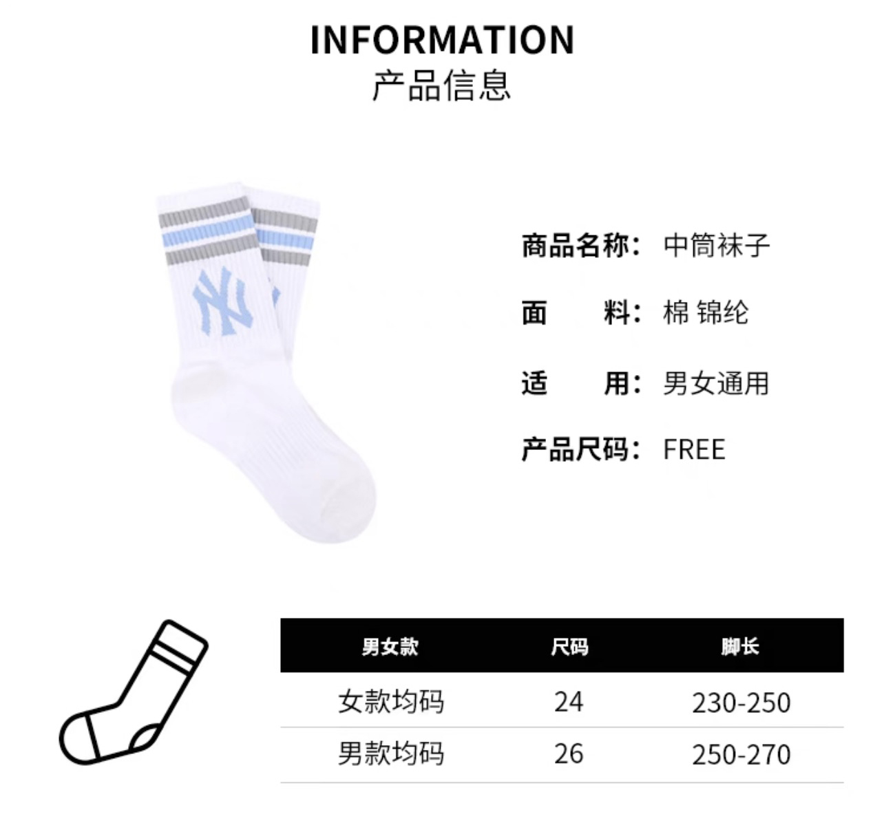 MLB时尚小标男女同款SEAM BALL袜子3ASOKS12N