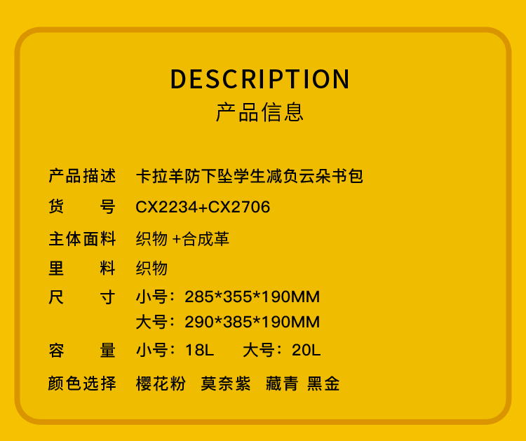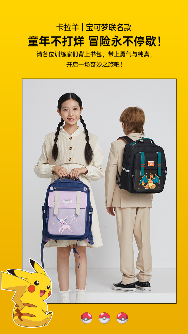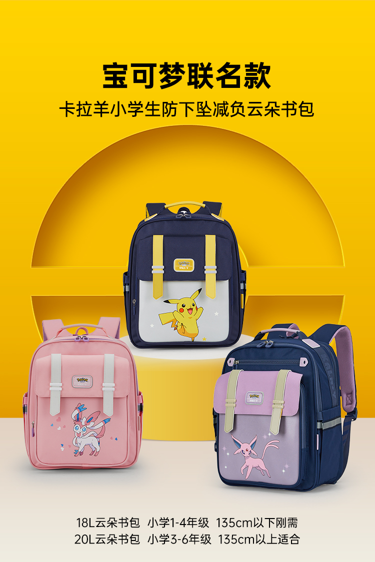 【宝可梦独家授权】卡拉羊小学生6维防下坠减负云朵书包CX2234+2706