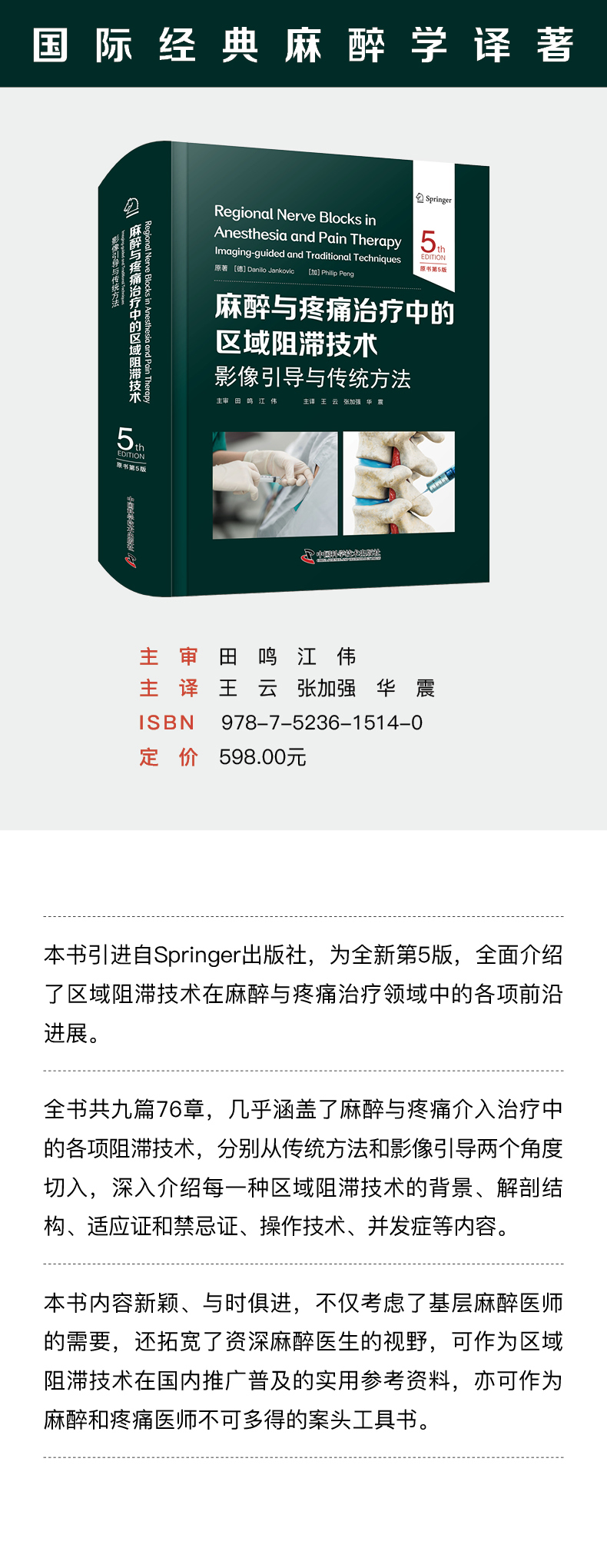 2025新书:麻醉与疼痛治疗中的区域阻滞技术:影像引导与传统方法(原书第5版)王云等译(中国科学技术出版社)