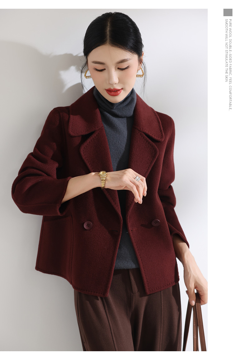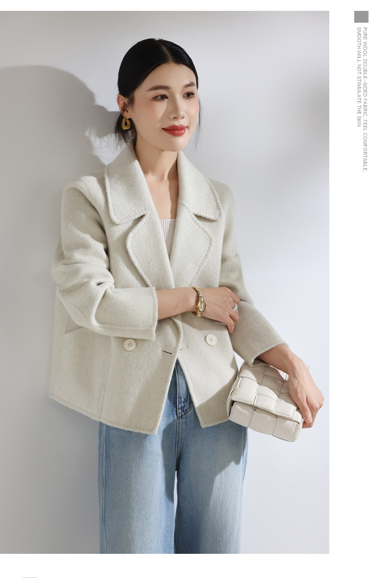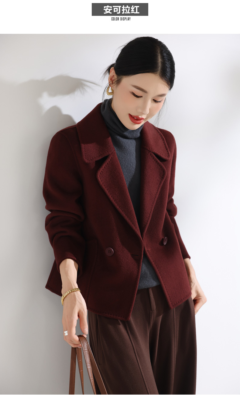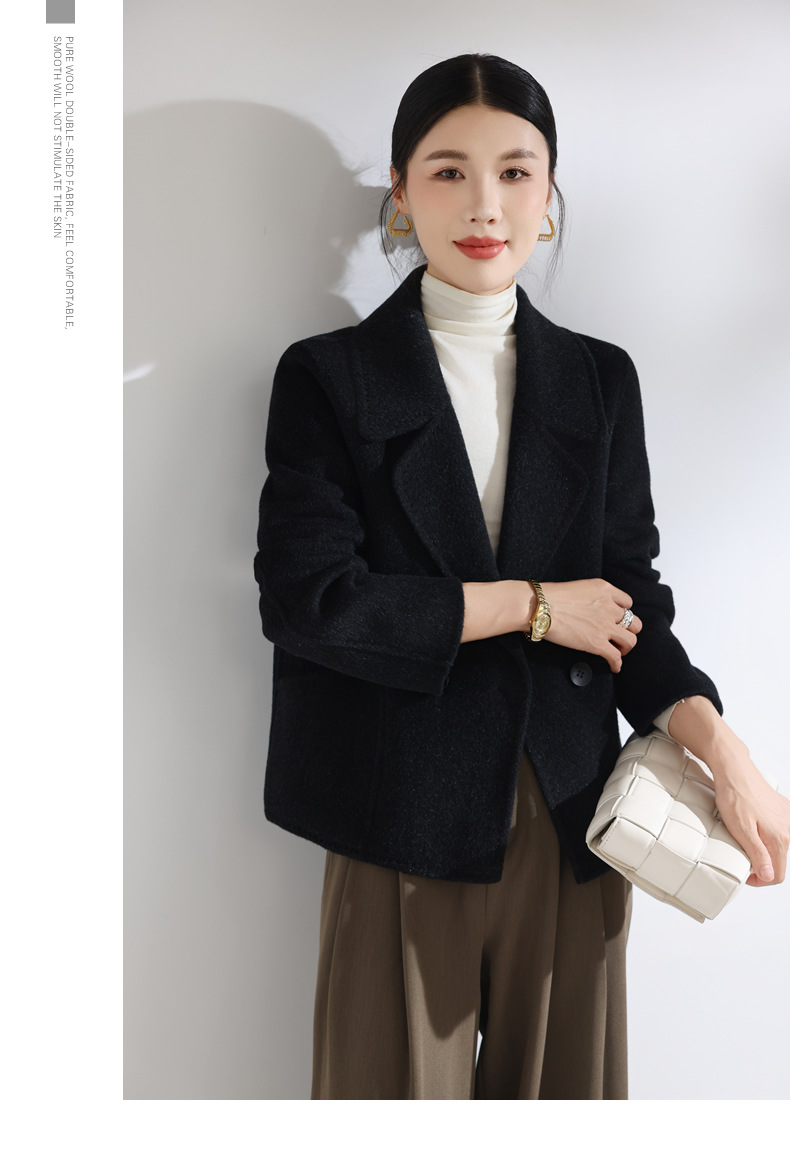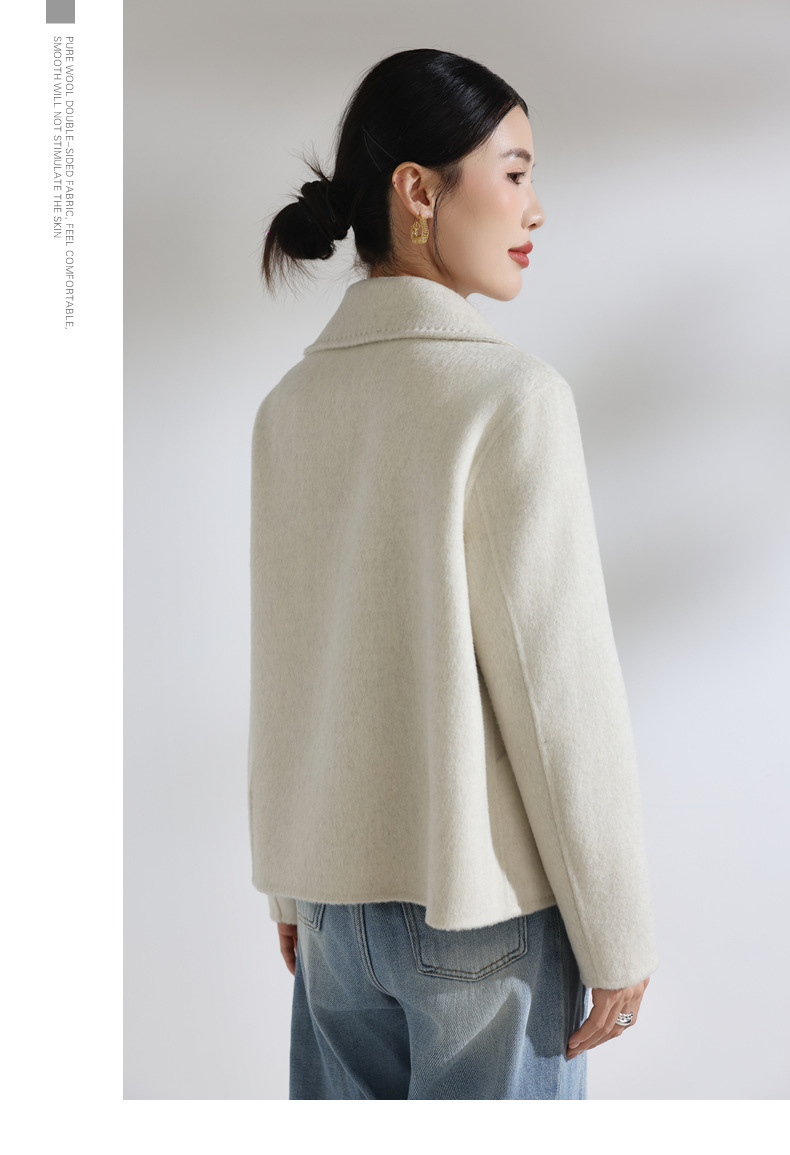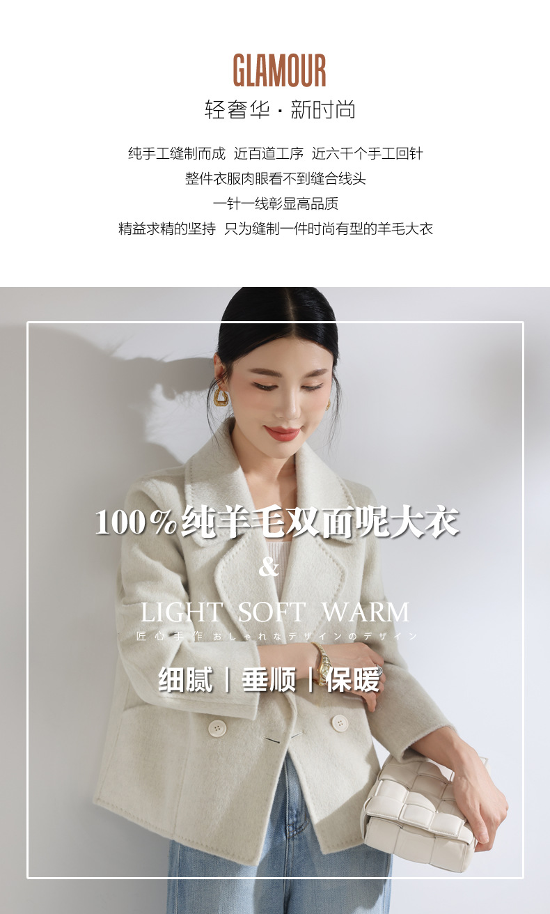 「自」全新升级【铂金会员395/天猫529/差价134】(20416)洛诗琳韩版气质毛呢外套2025秋冬百搭短款双面羊毛外套女