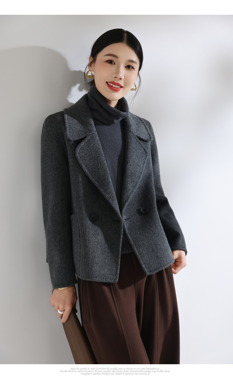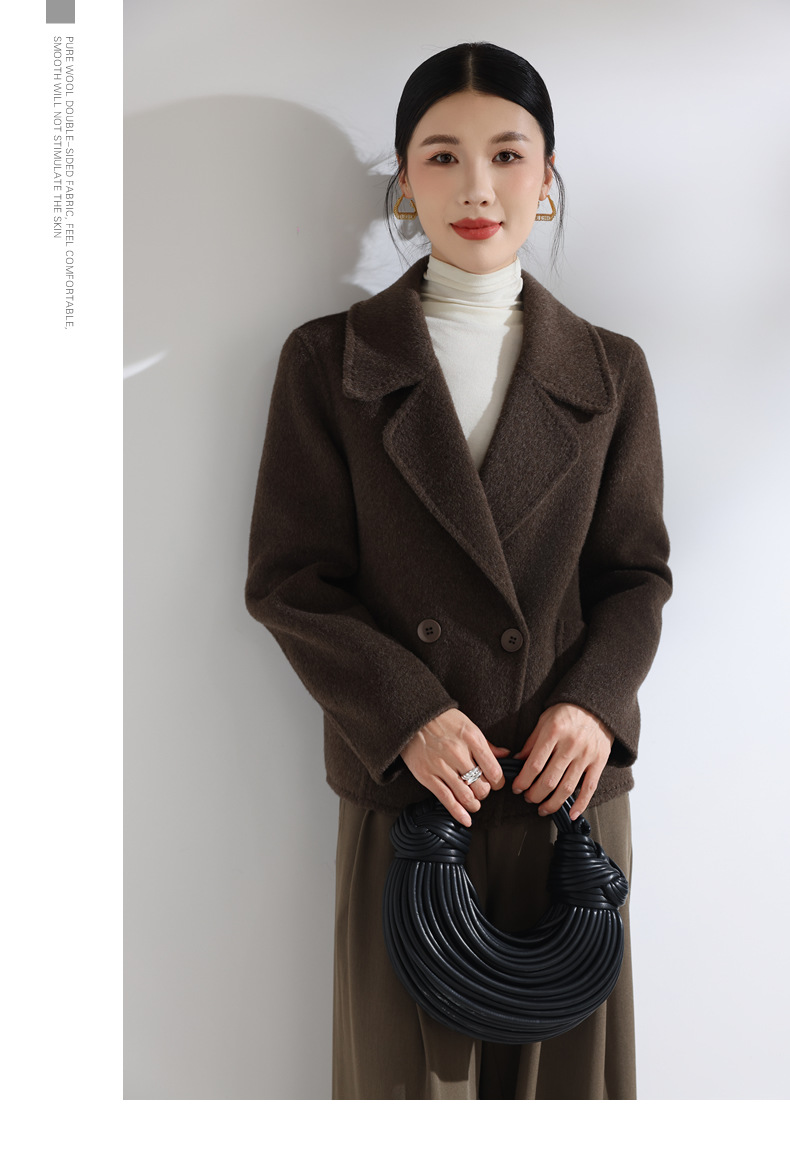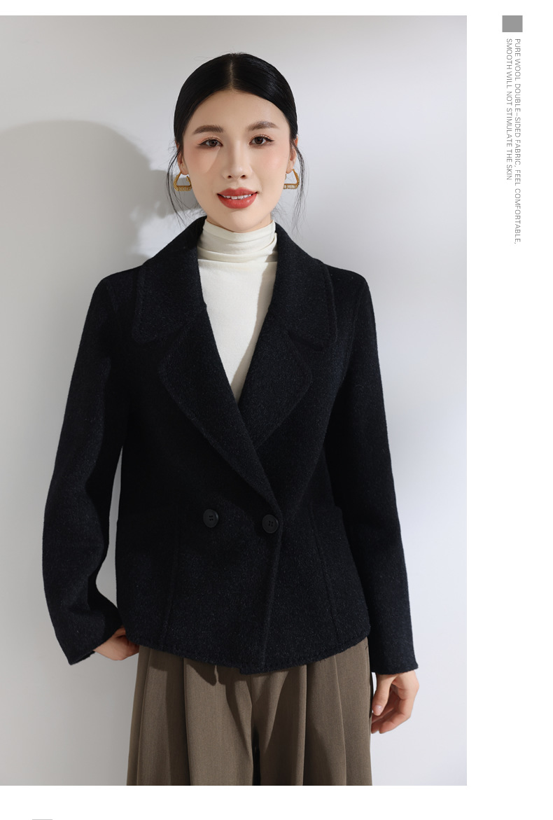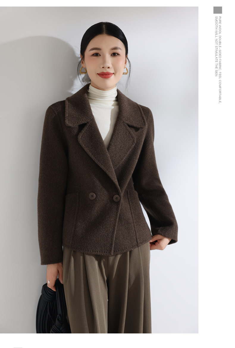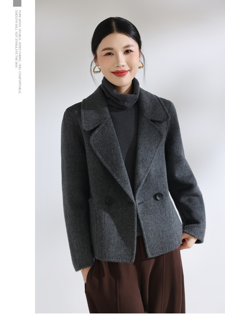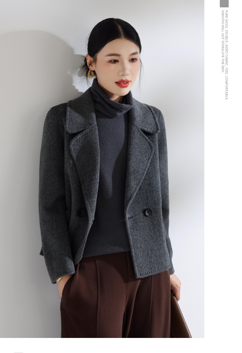 「自」全新升级【铂金会员395/天猫529/差价134】(20416)洛诗琳韩版气质毛呢外套2025秋冬百搭短款双面羊毛外套女