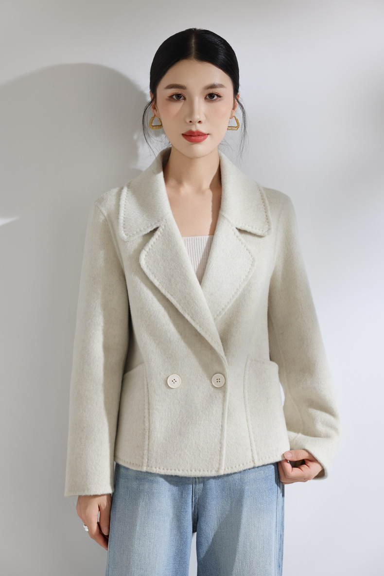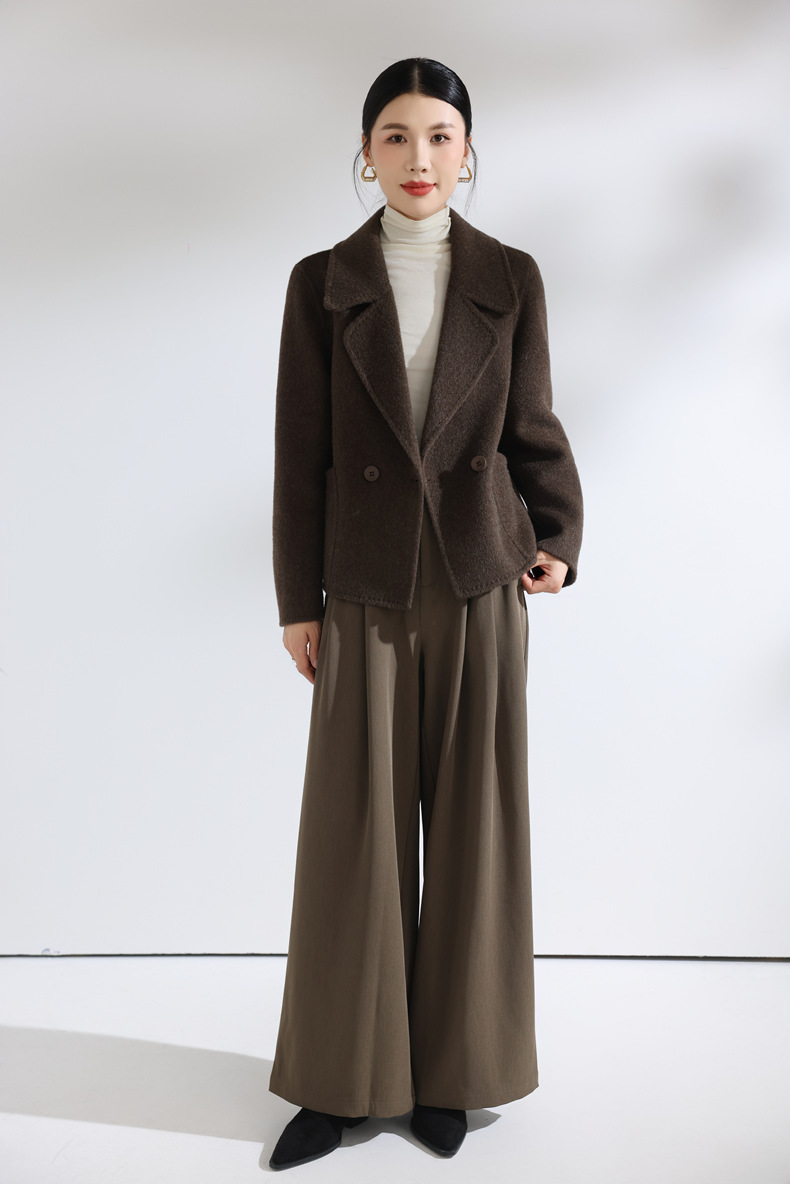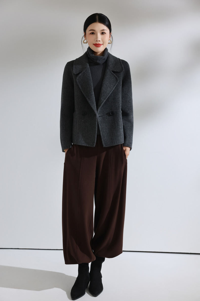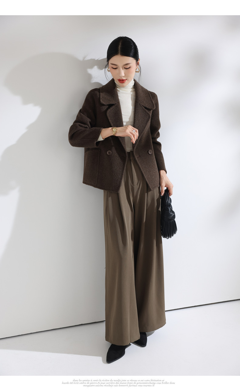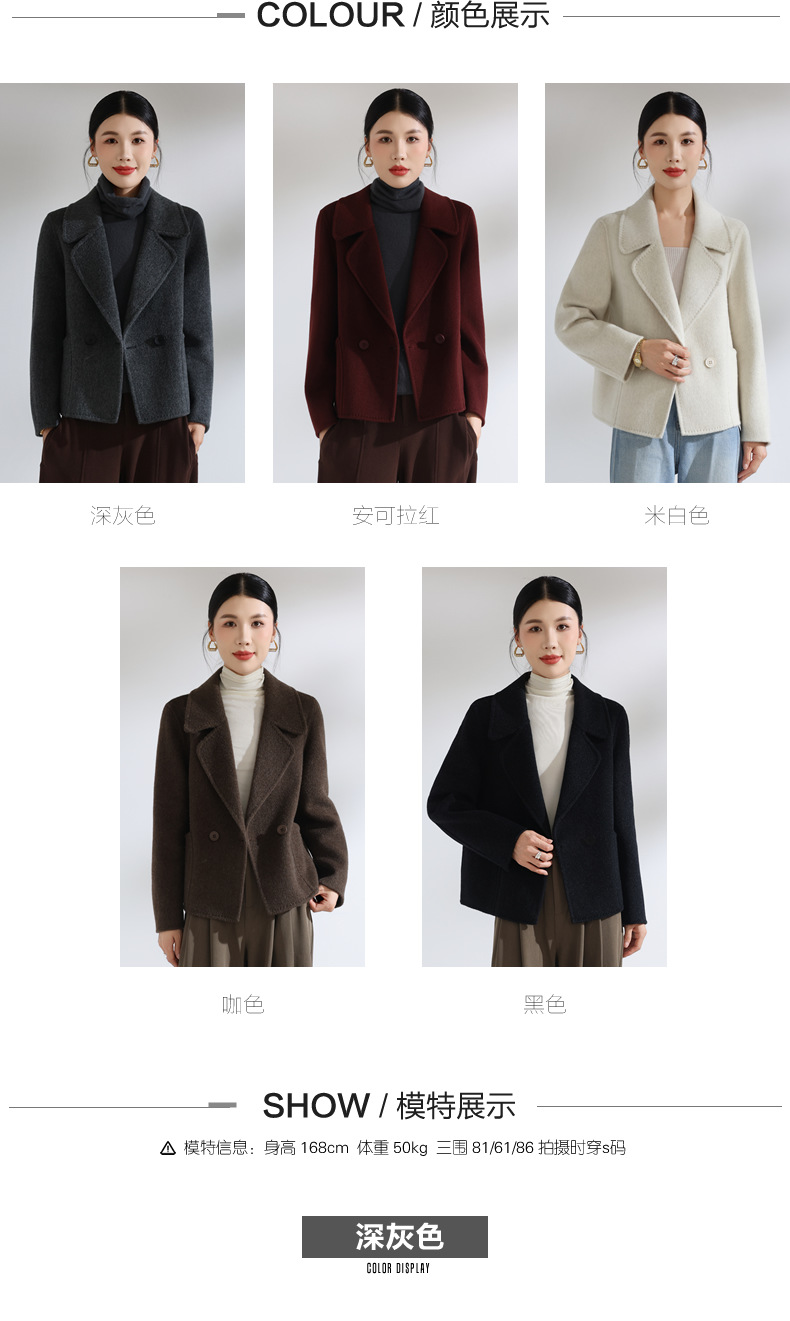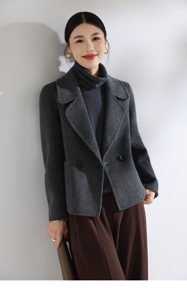 「自」全新升级【铂金会员395/天猫529/差价134】(20416)洛诗琳韩版气质毛呢外套2025秋冬百搭短款双面羊毛外套女
