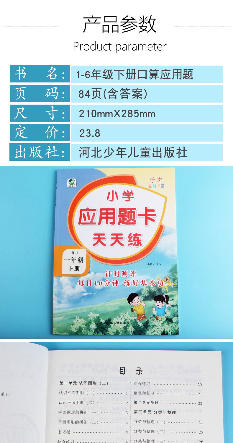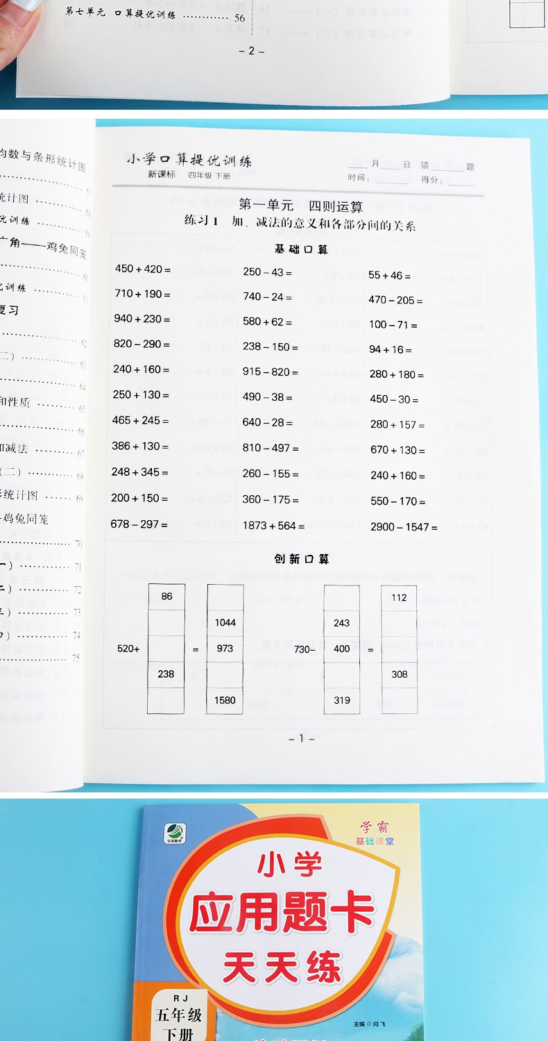 小学生应用题卡天天练下册1-6年级人教版数学口算心算速算同步专项思维训练算术题强化提升练习册每日一练及时测评