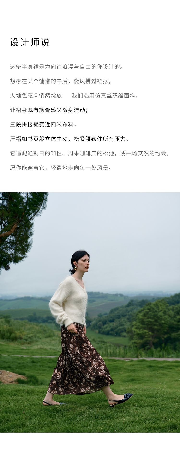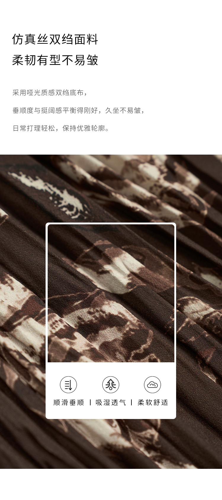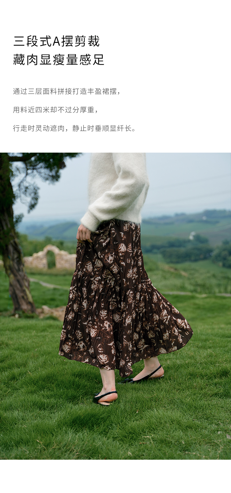 HeyDress松紧腰压褶印花拼接半身裙