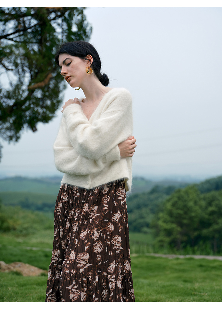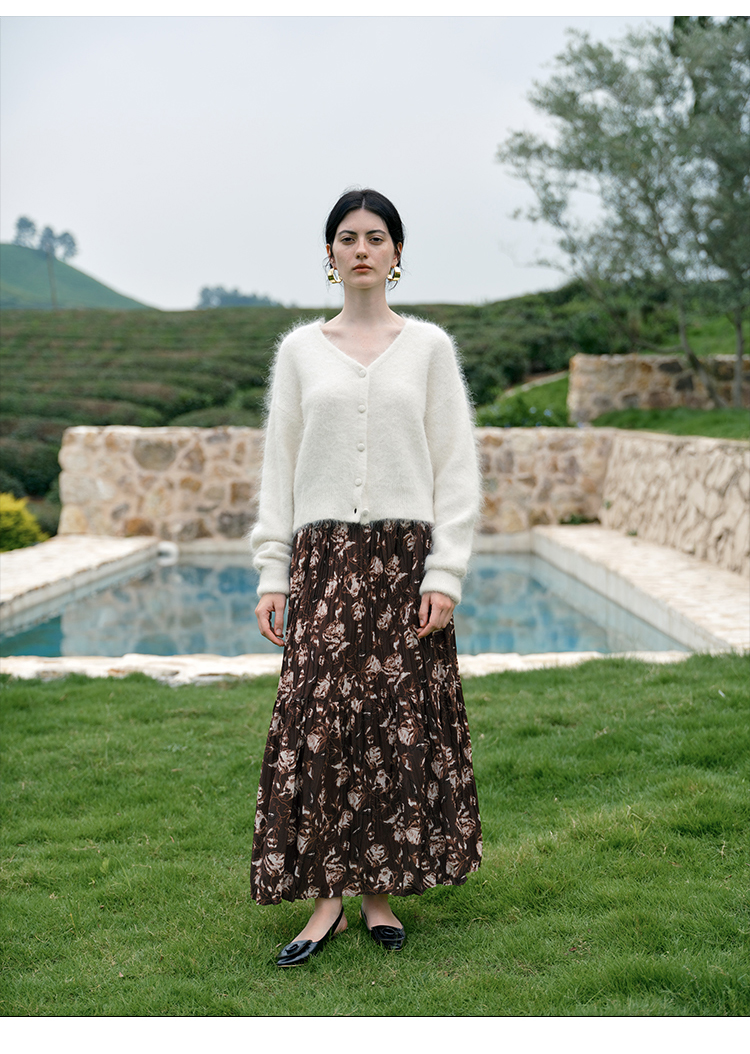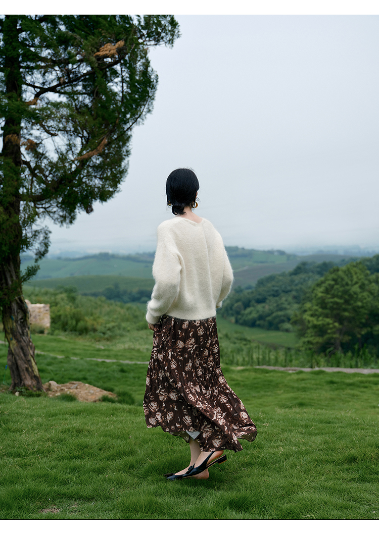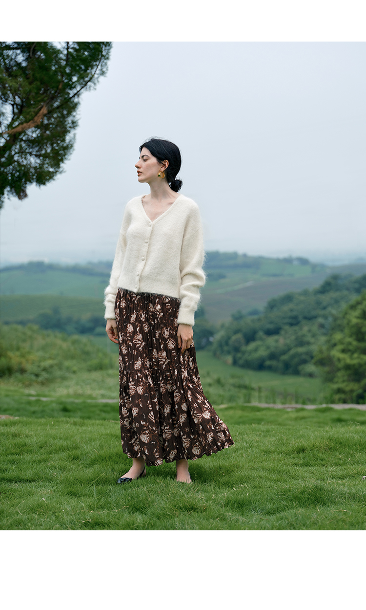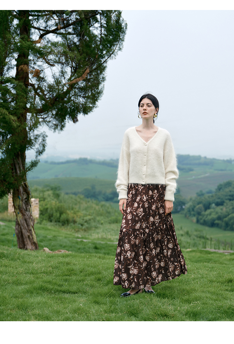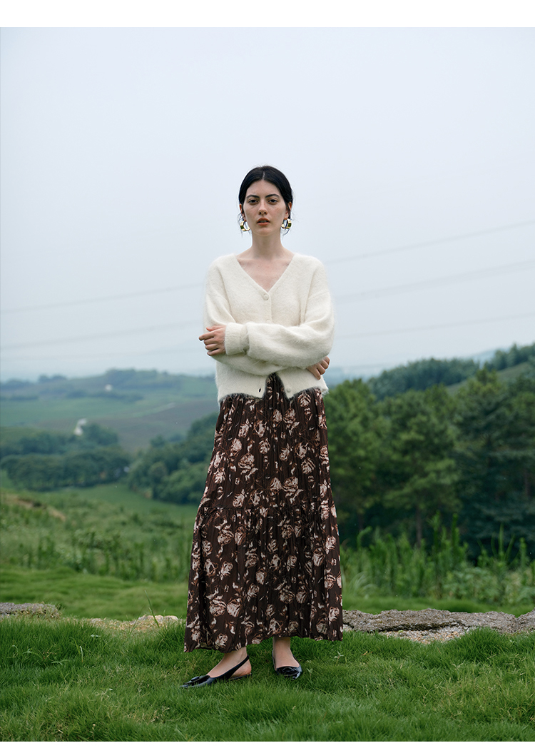 HeyDress松紧腰压褶印花拼接半身裙