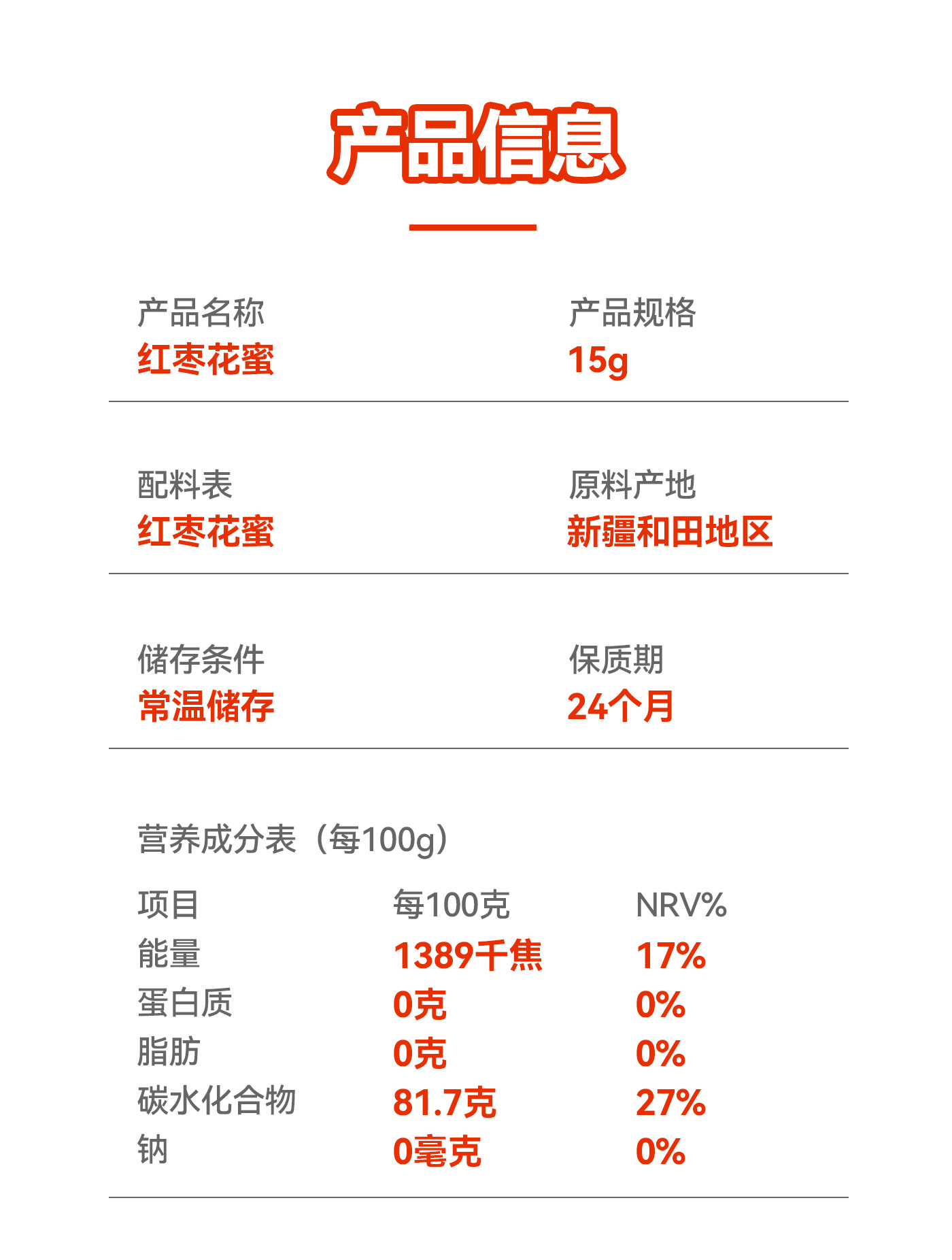 天山花开·红枣花蜜蜂蜜15g*20条/瓶 蜜香浓郁 便携即冲