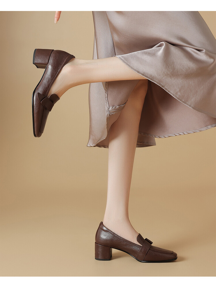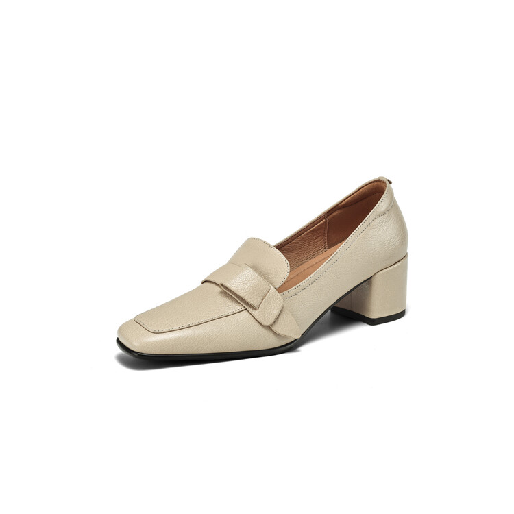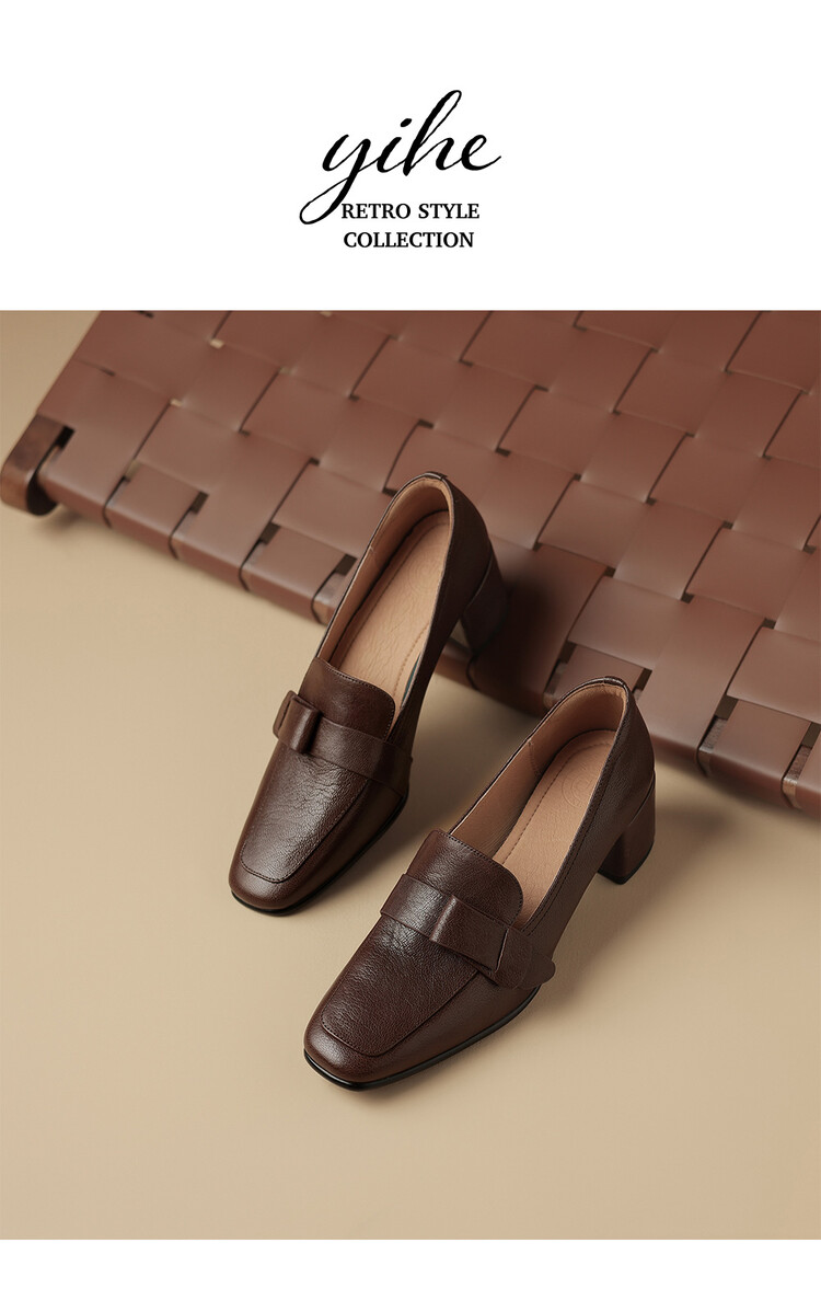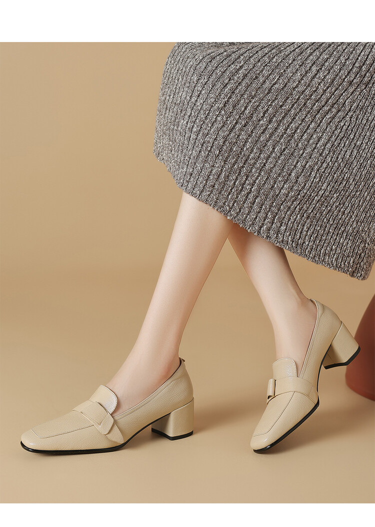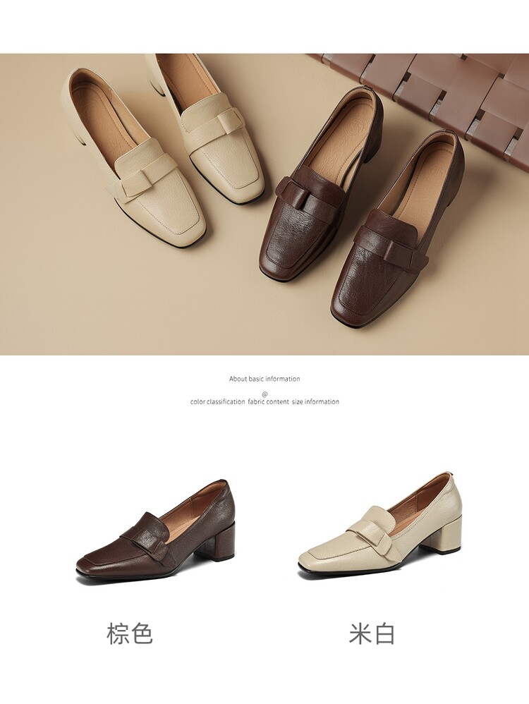 【预售5天】质感满满羊皮通勤高跟乐福鞋秋粗跟方头深口真皮单鞋女DTN&C161-7