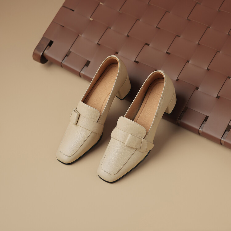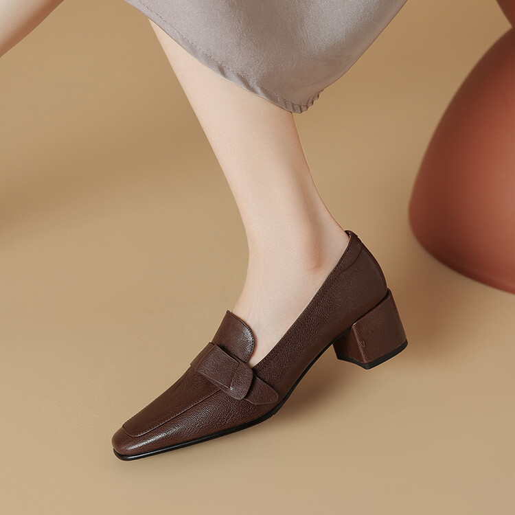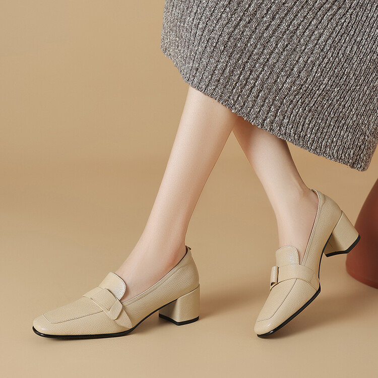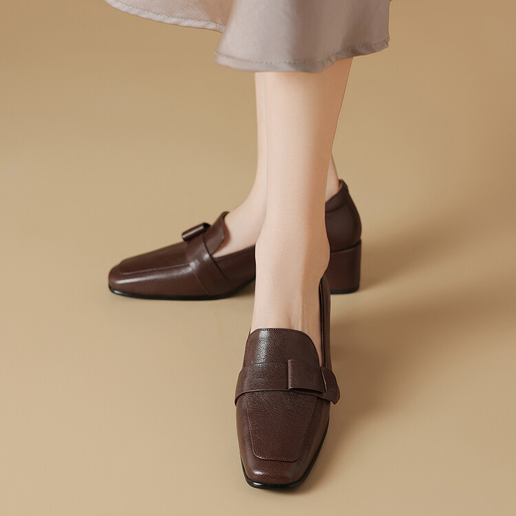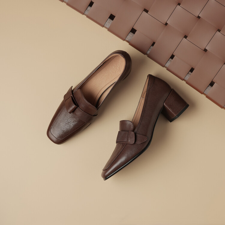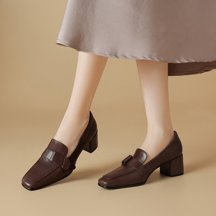 【预售5天】质感满满羊皮通勤高跟乐福鞋秋粗跟方头深口真皮单鞋女DTN&C161-7