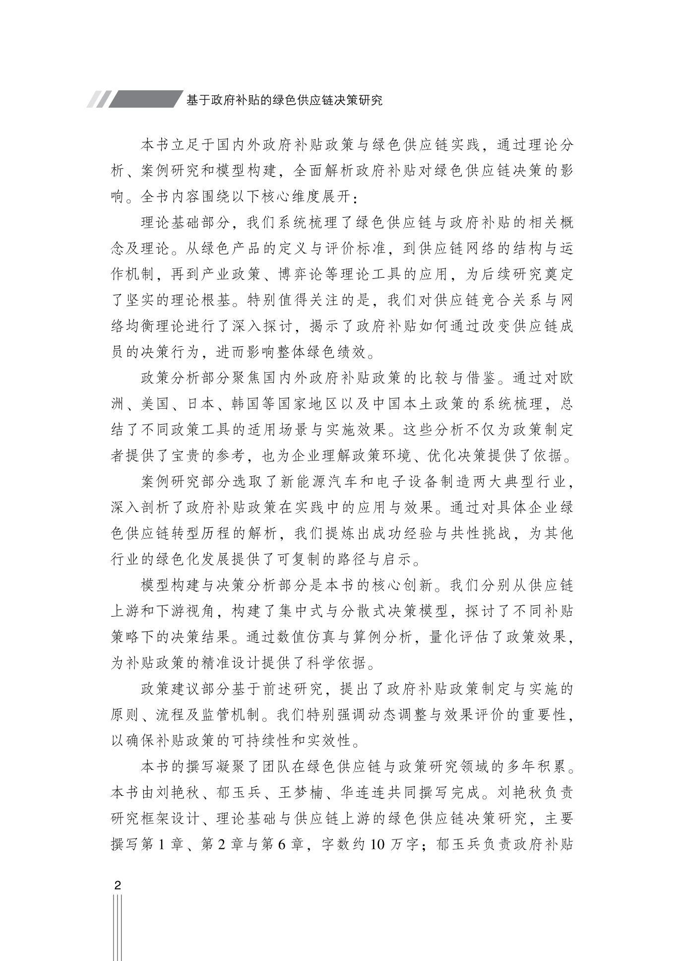 基于政府补贴的绿色供应链决策研究