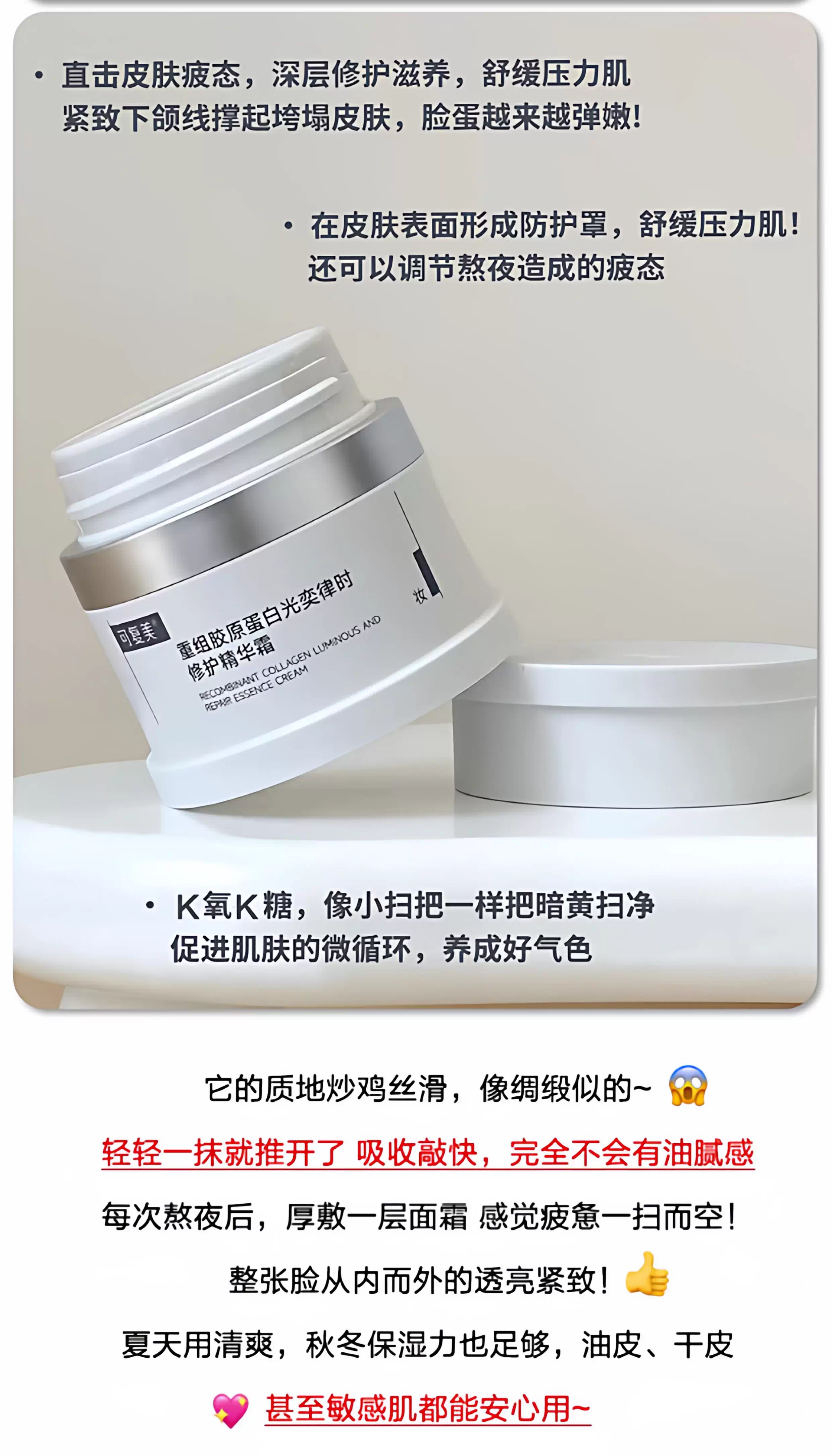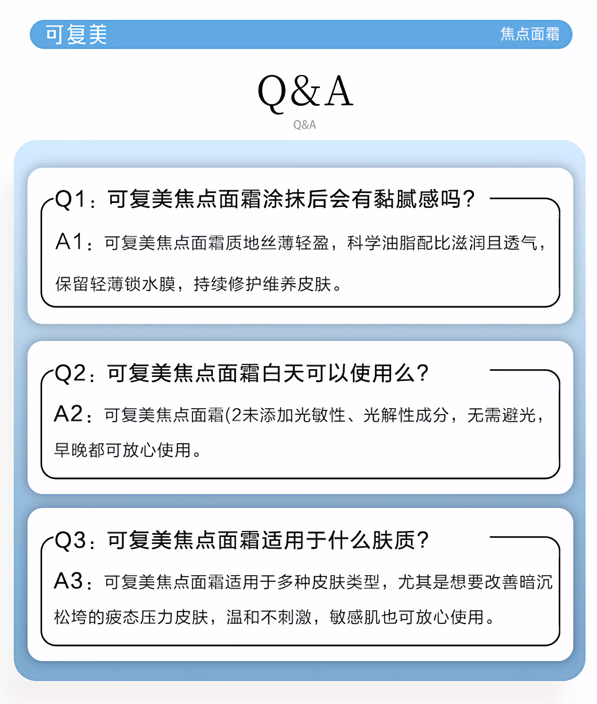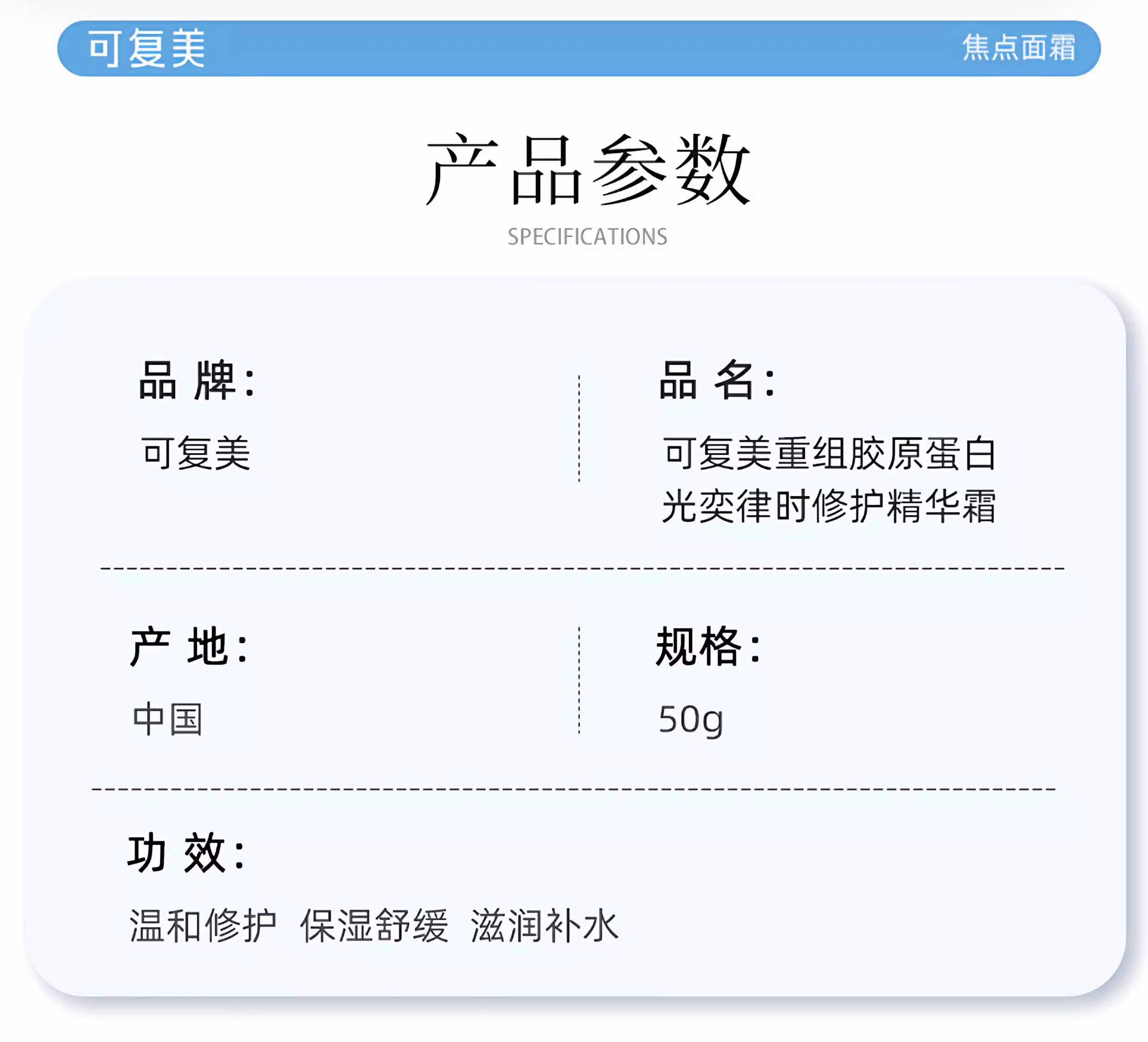 可复美焦点面霜50g 重组胶原蛋白温和修护保湿舒缓滋润补水替换装