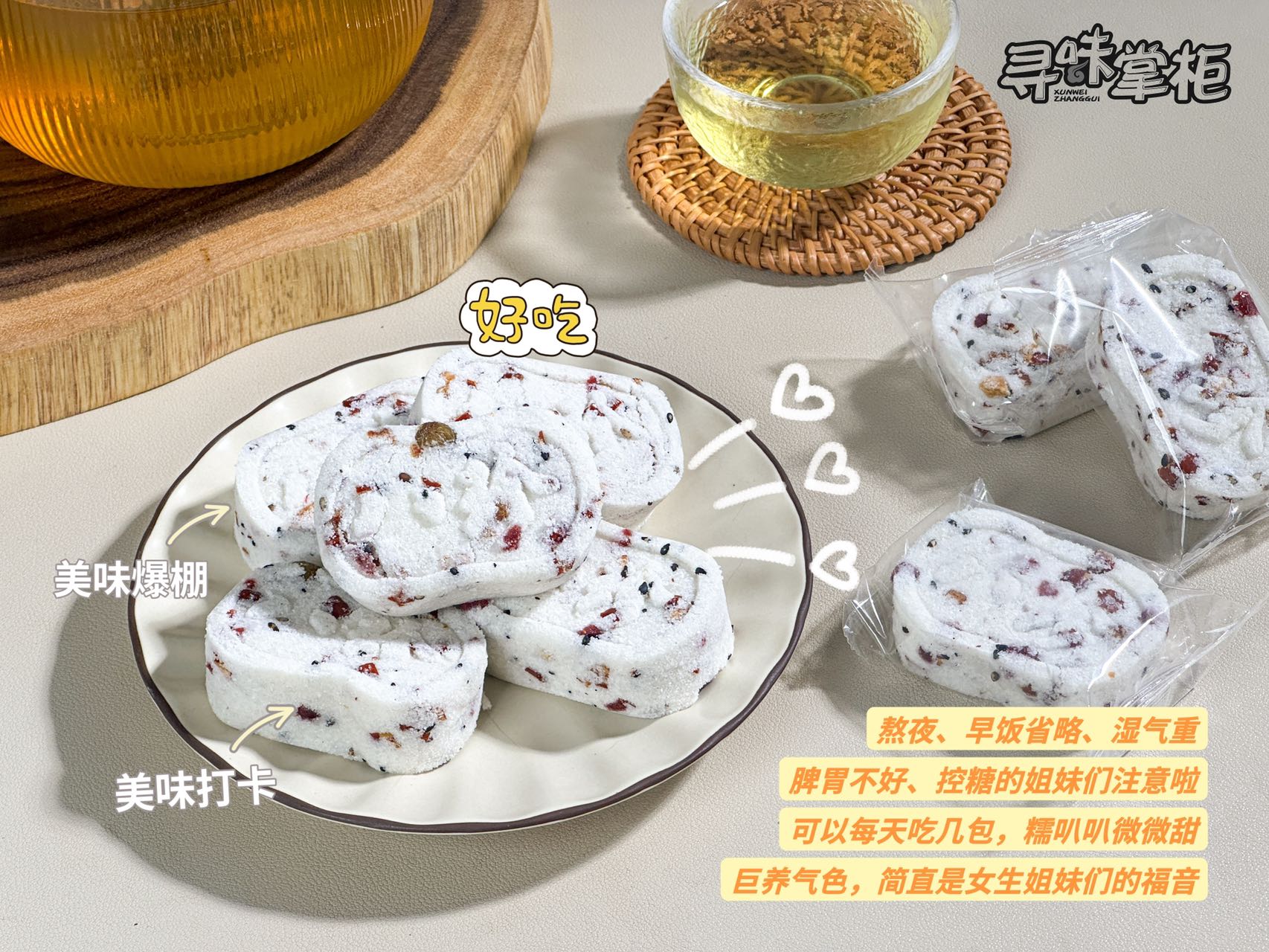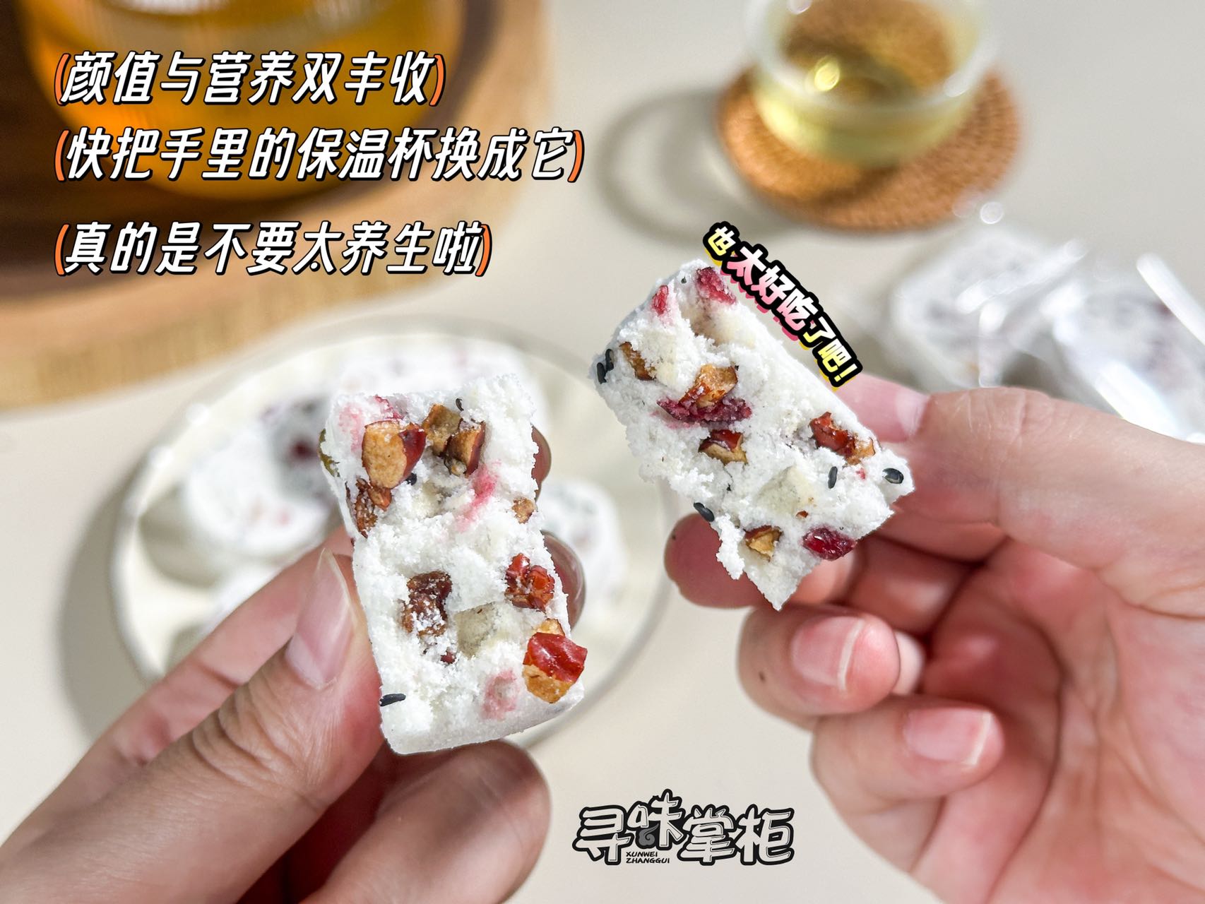 吃起来清香软糯有嚼头,不加蔗糖色素防腐剂,真的用心满满,每一口都能感受到其中的精华,绝对是口感与健康兼备的美食👍