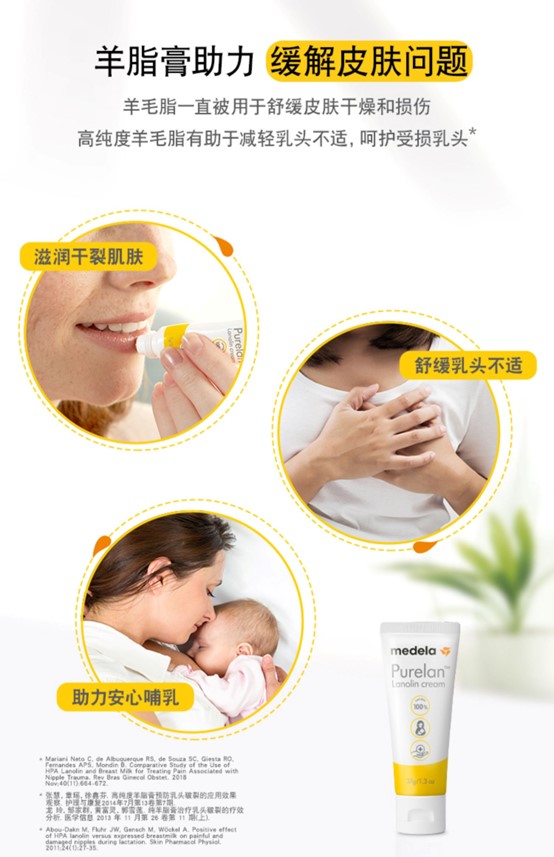 美德乐medela乳头膏哺乳期99.5%羊脂膏7g/37g乳头霜孕期防皲裂