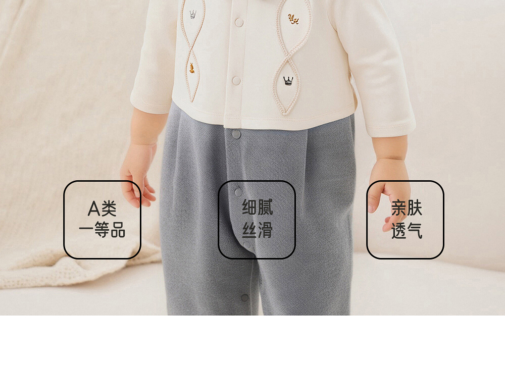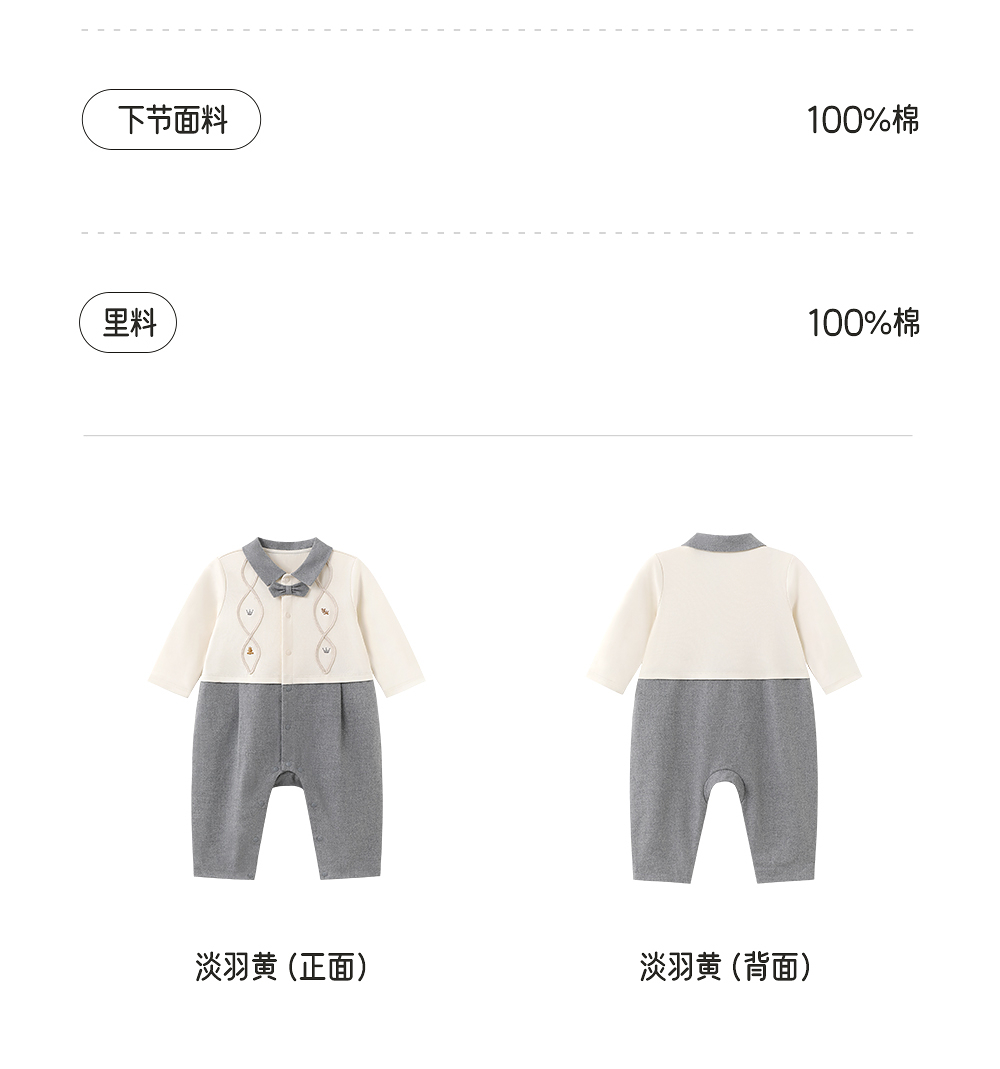 【商场同款】英氏婴儿衣服假两件男童连体衣可爱纯棉男宝外出衣服