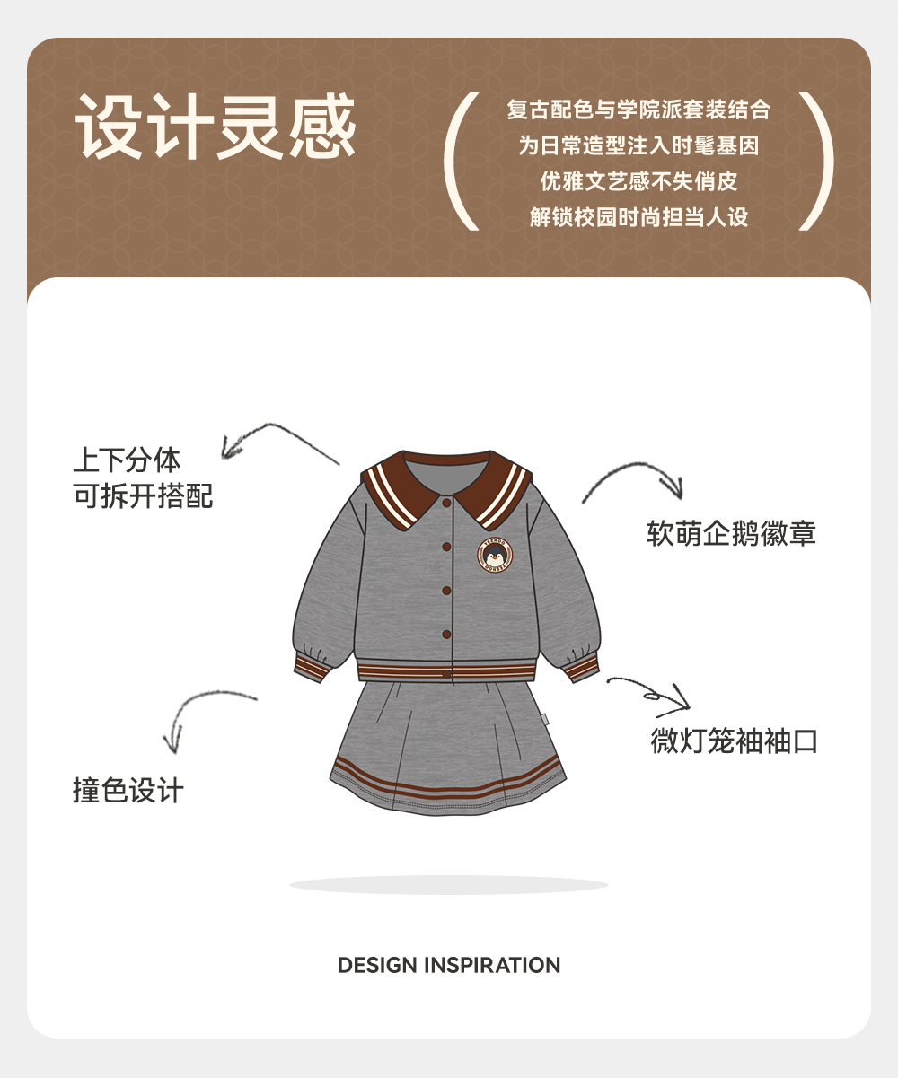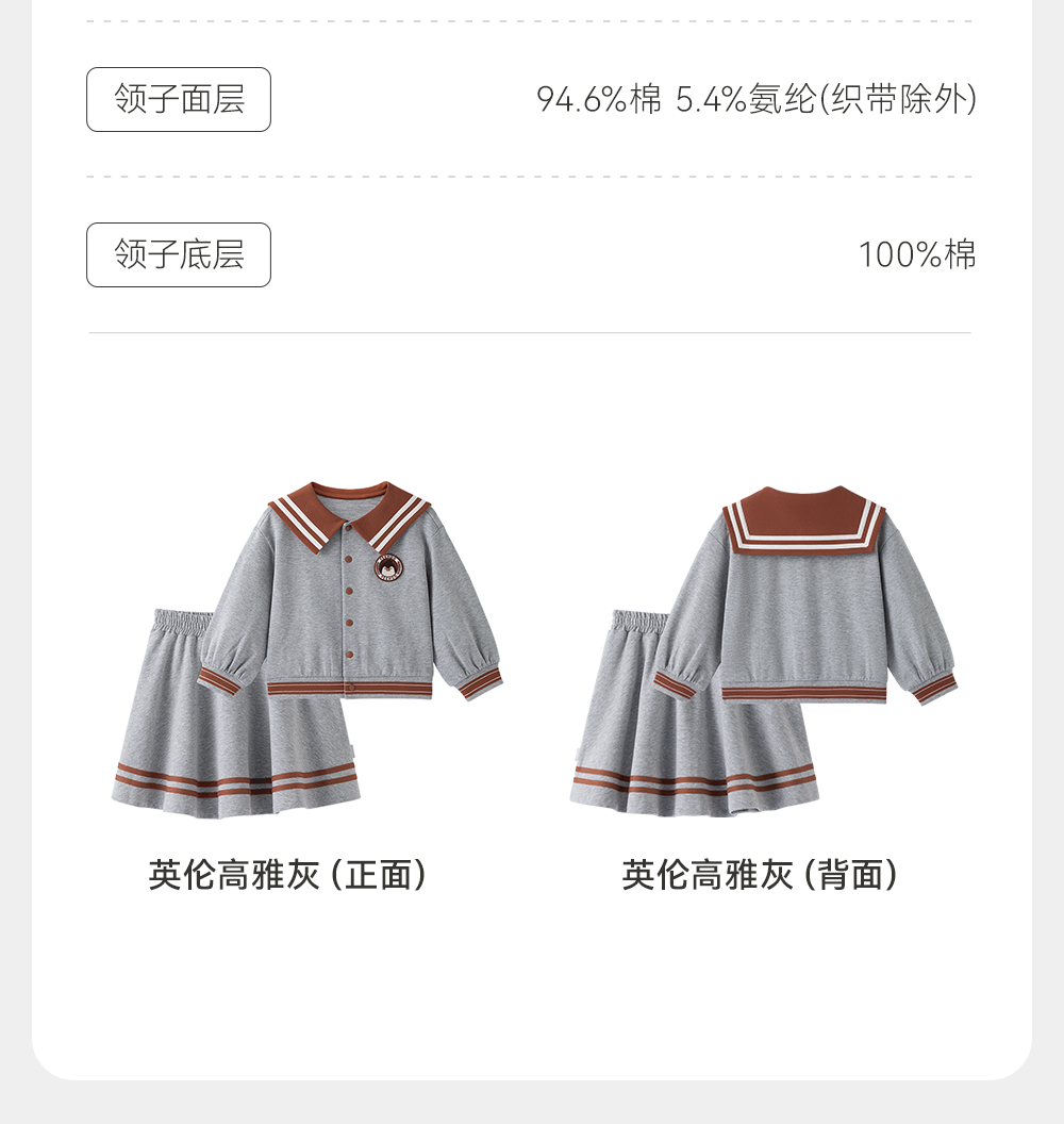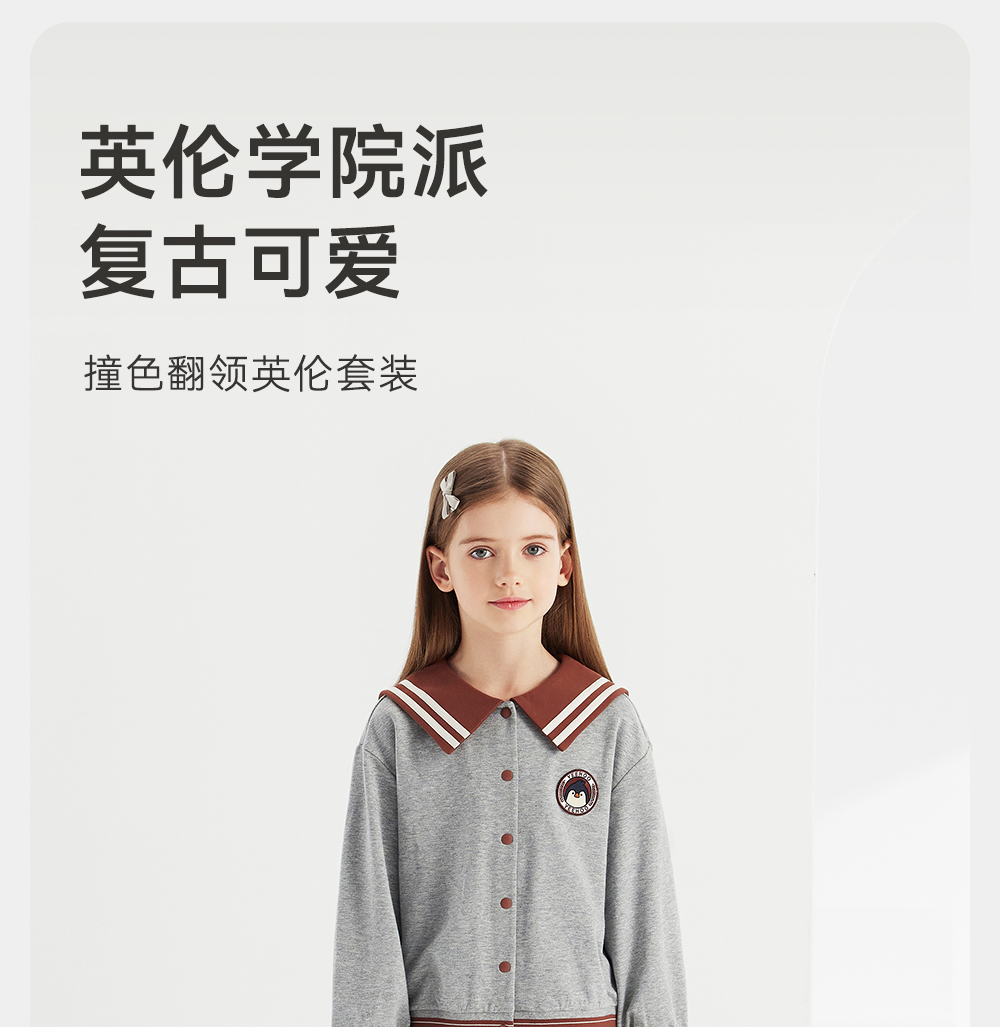 英氏官方旗舰女童套装春秋学院风休闲运动卫衣卫裤两件装