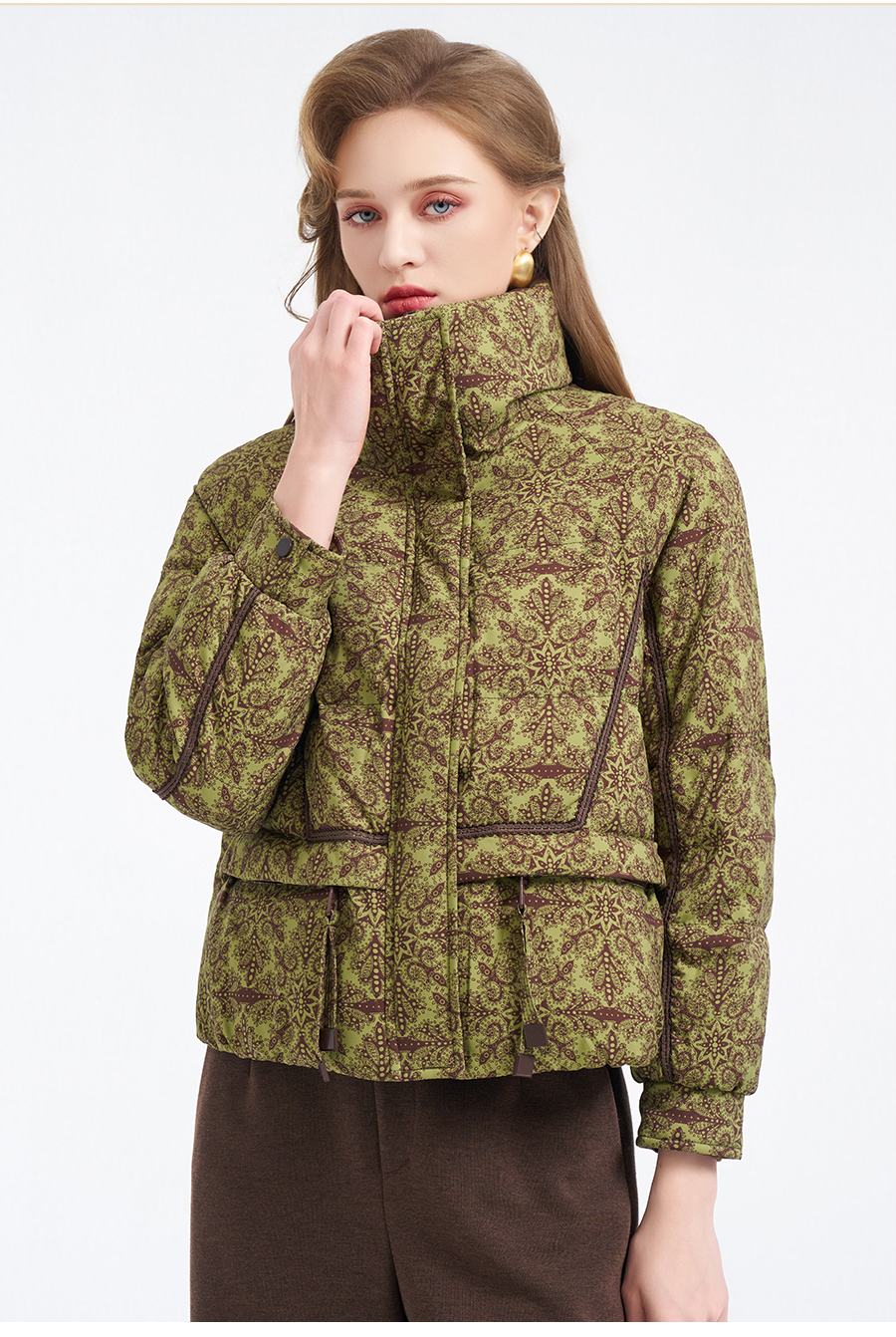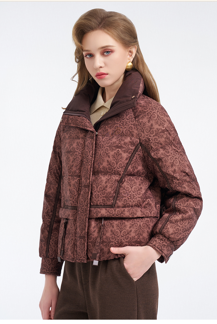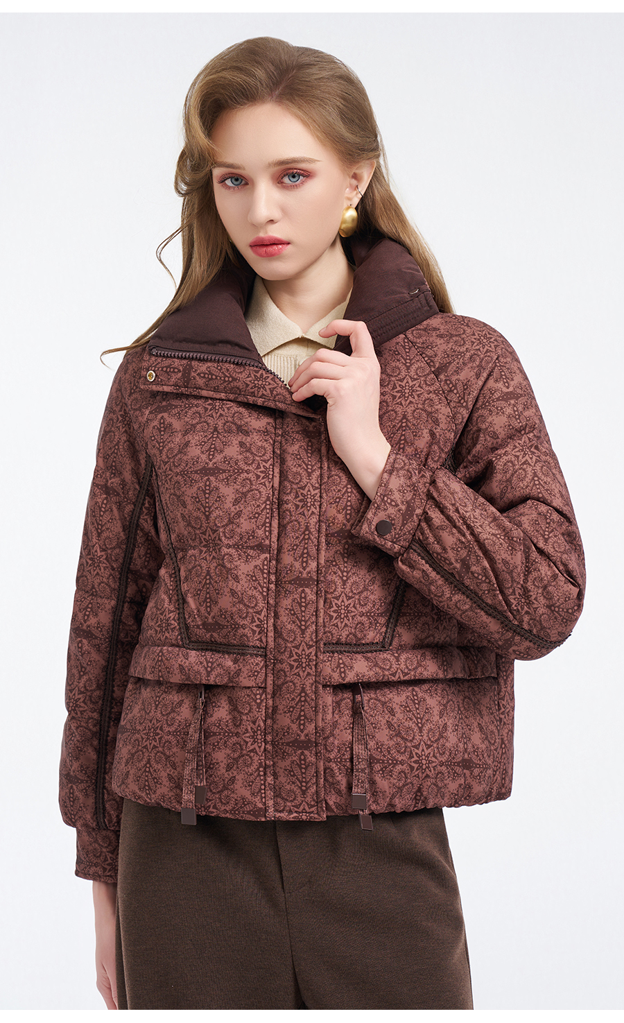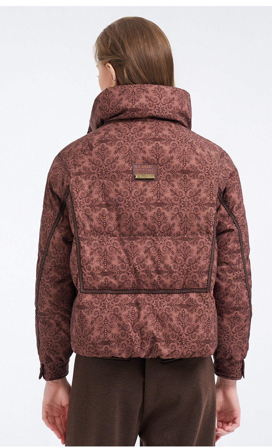 【两色可选】乔万尼新款保暖复古印花休闲感白鸭绒短款羽绒服EZ4T209