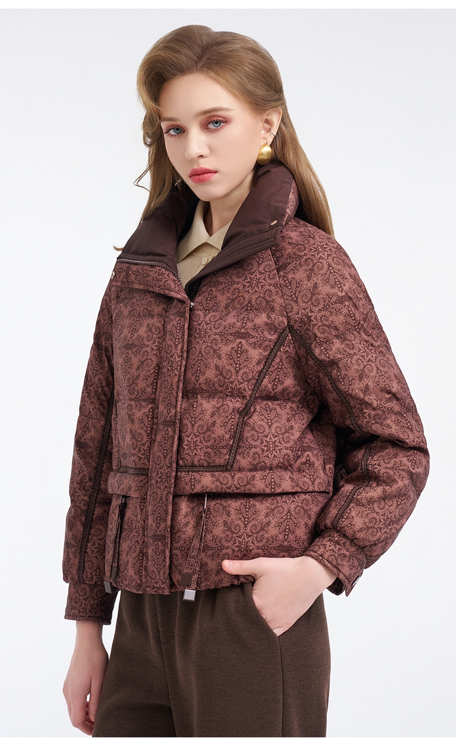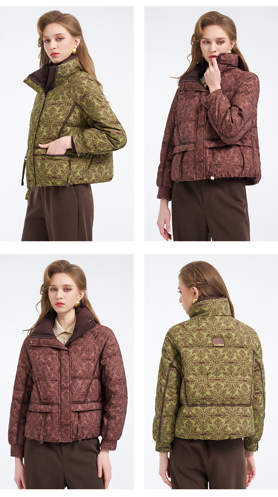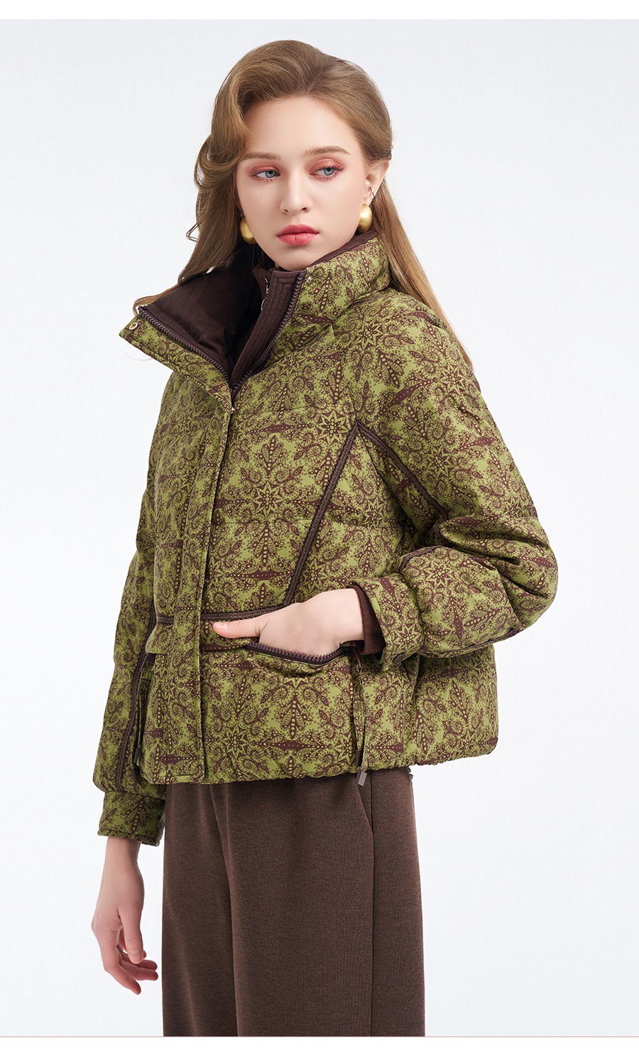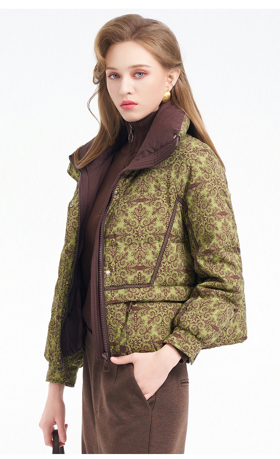 【两色可选】乔万尼新款保暖复古印花休闲感白鸭绒短款羽绒服EZ4T209
