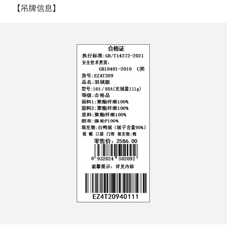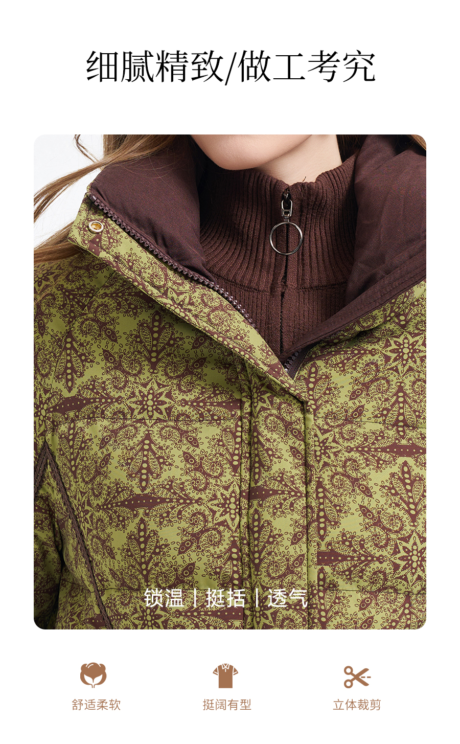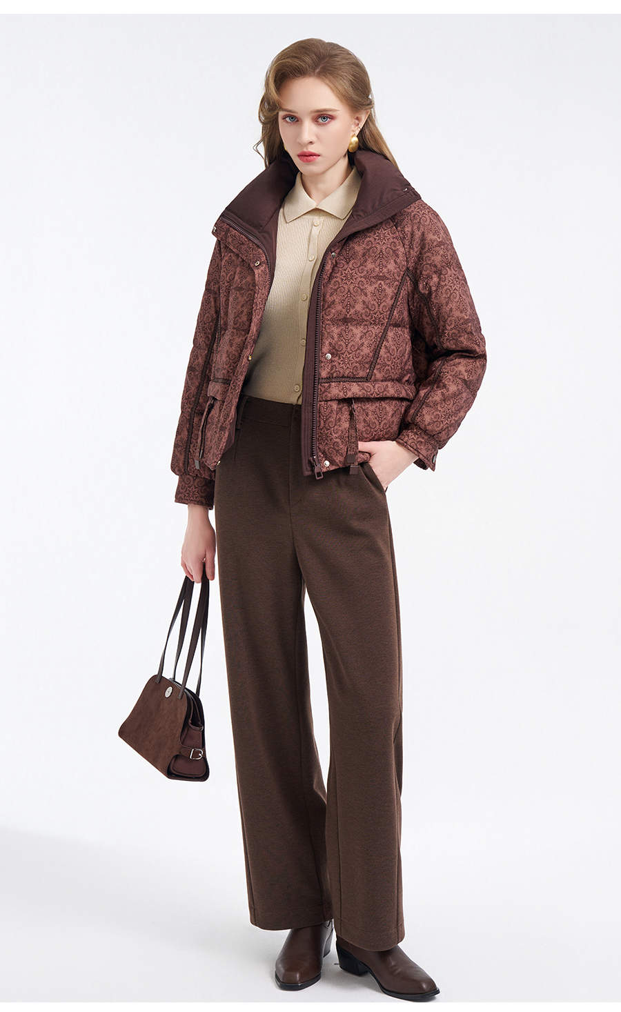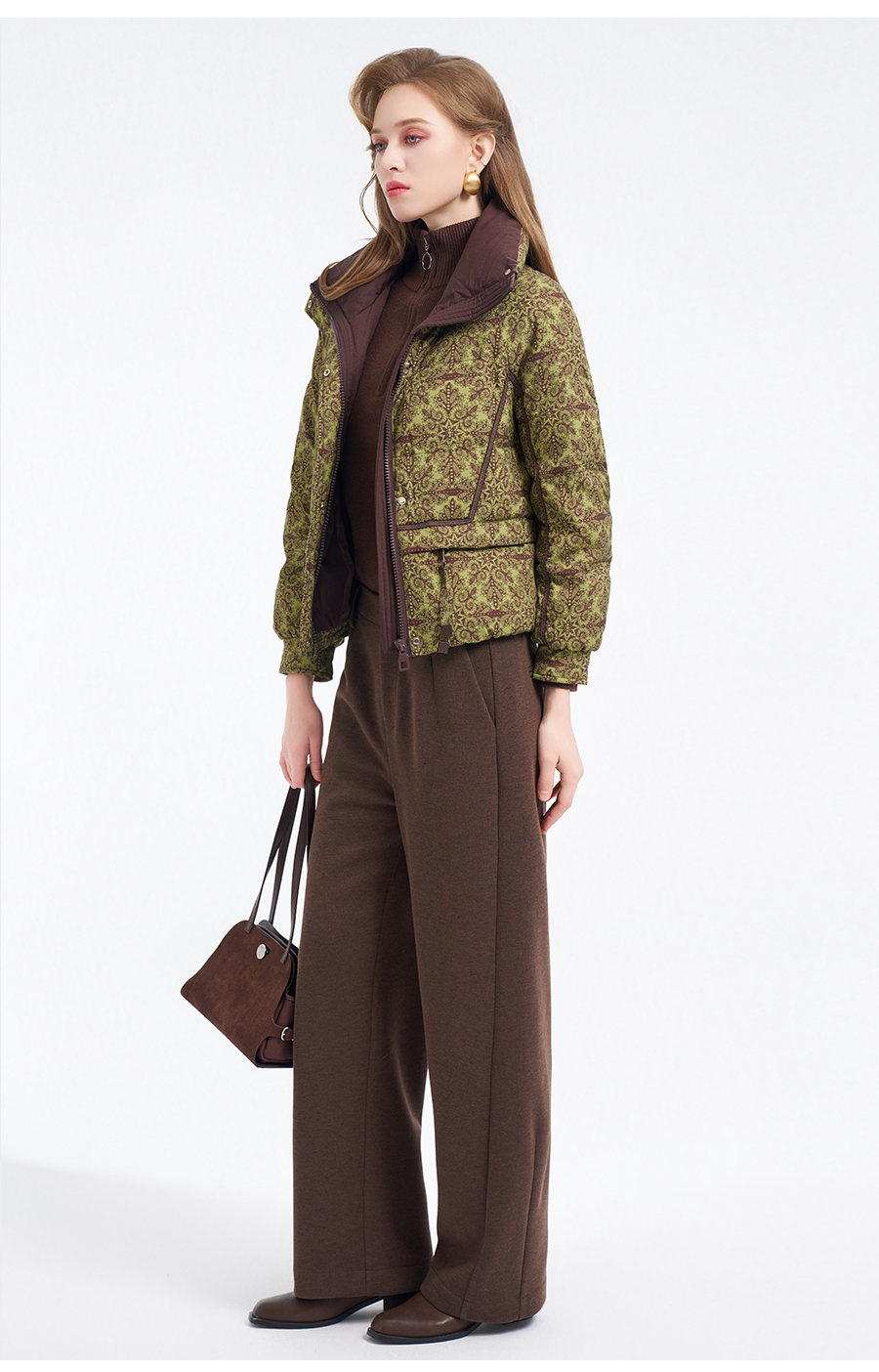 【两色可选】乔万尼新款保暖复古印花休闲感白鸭绒短款羽绒服EZ4T209