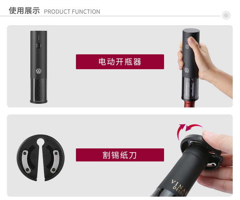 电动开瓶器:不锈钢、PC