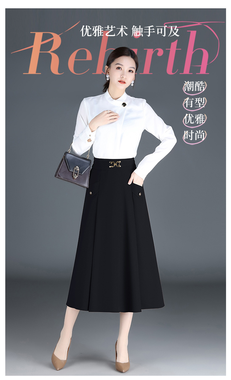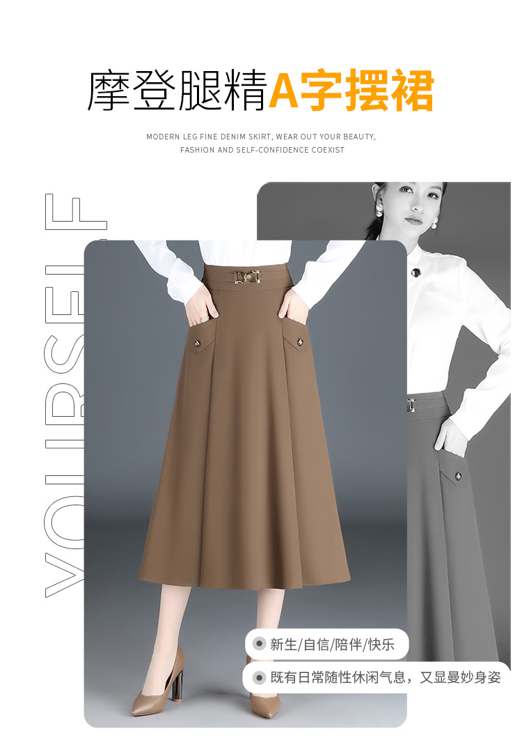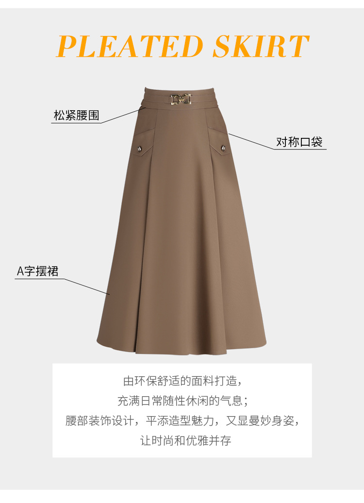 简约长款百褶拼接,时尚半身裙气质A字裙MYX-3306