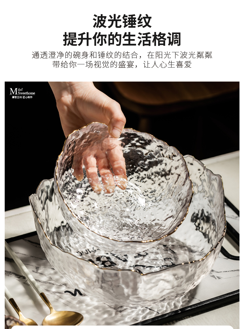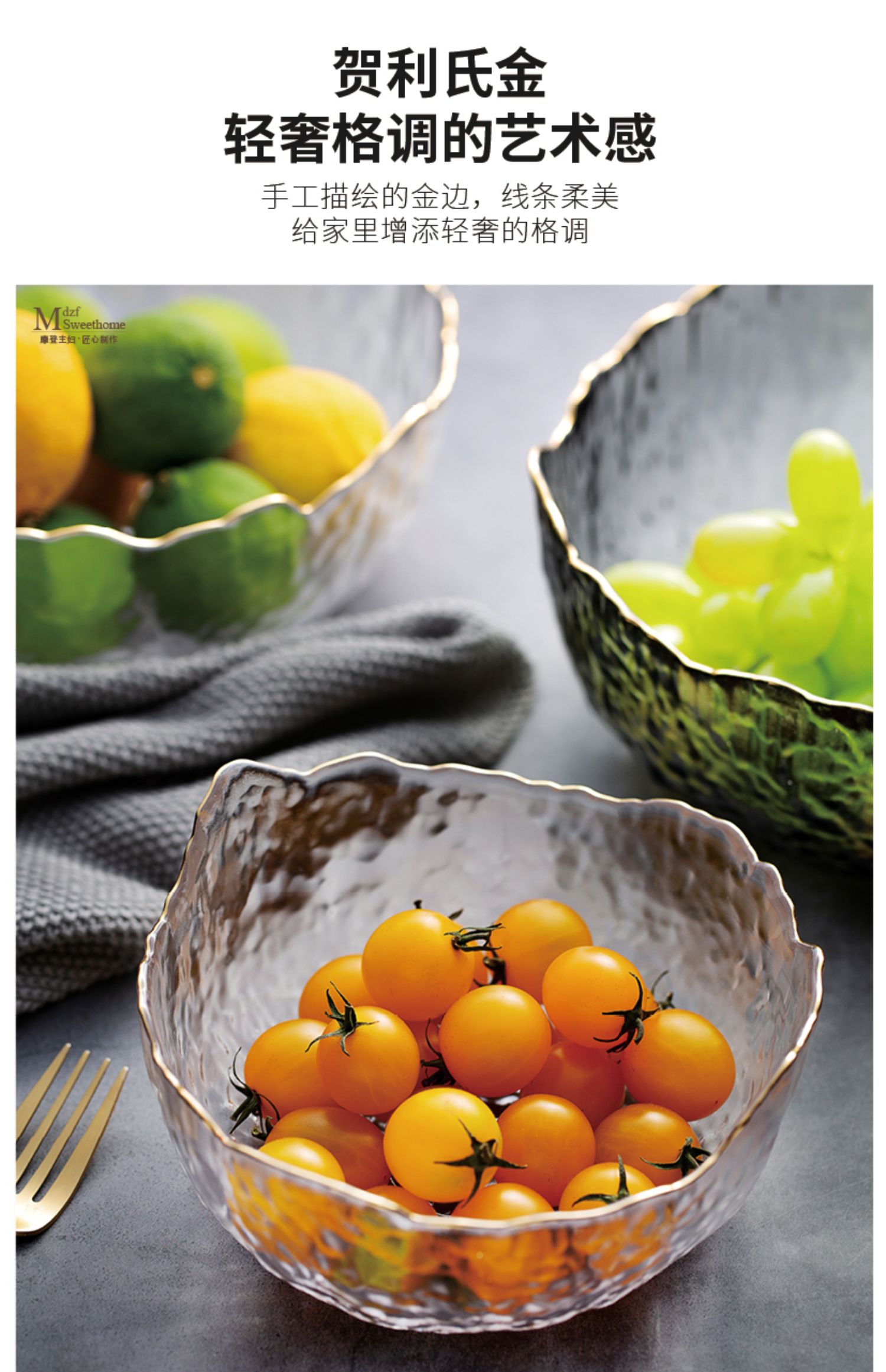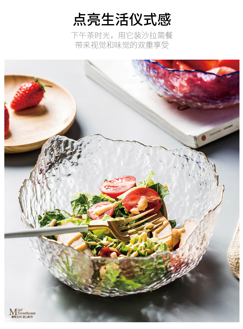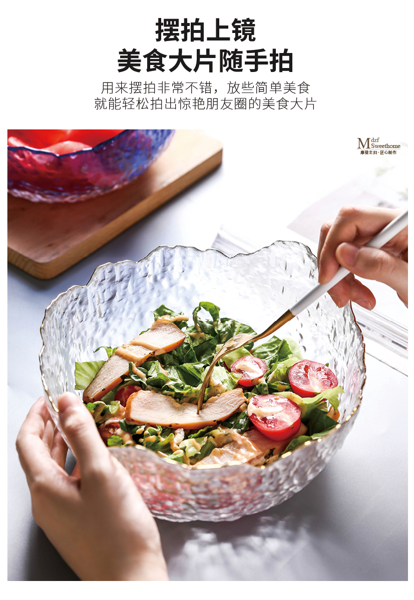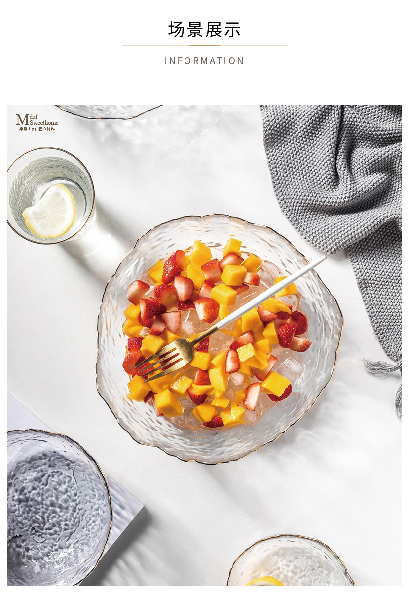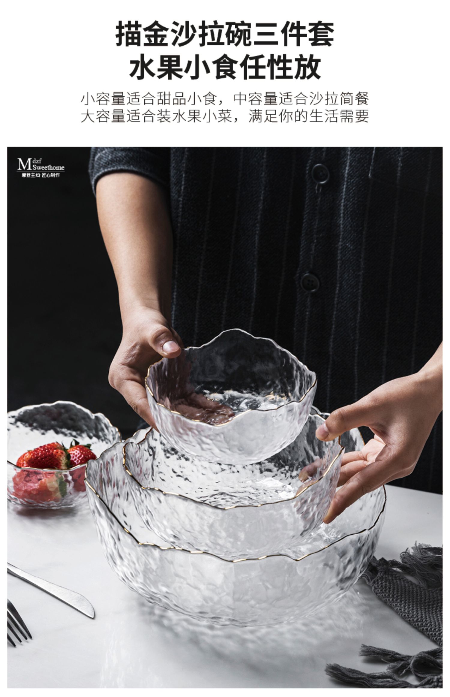摩登主妇韩版ins风透明玻璃碗家用餐具套装水果甜品沙拉盘金边碗