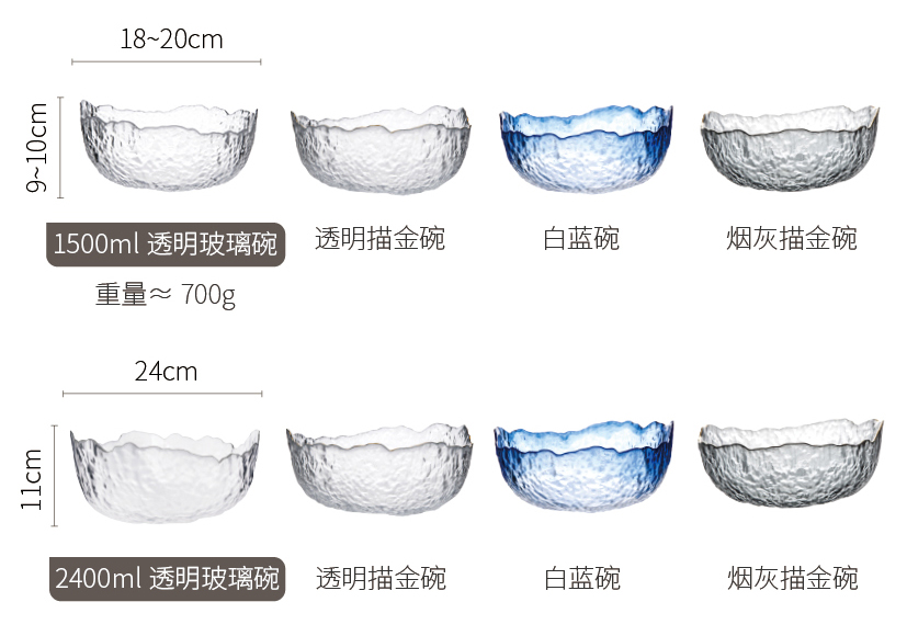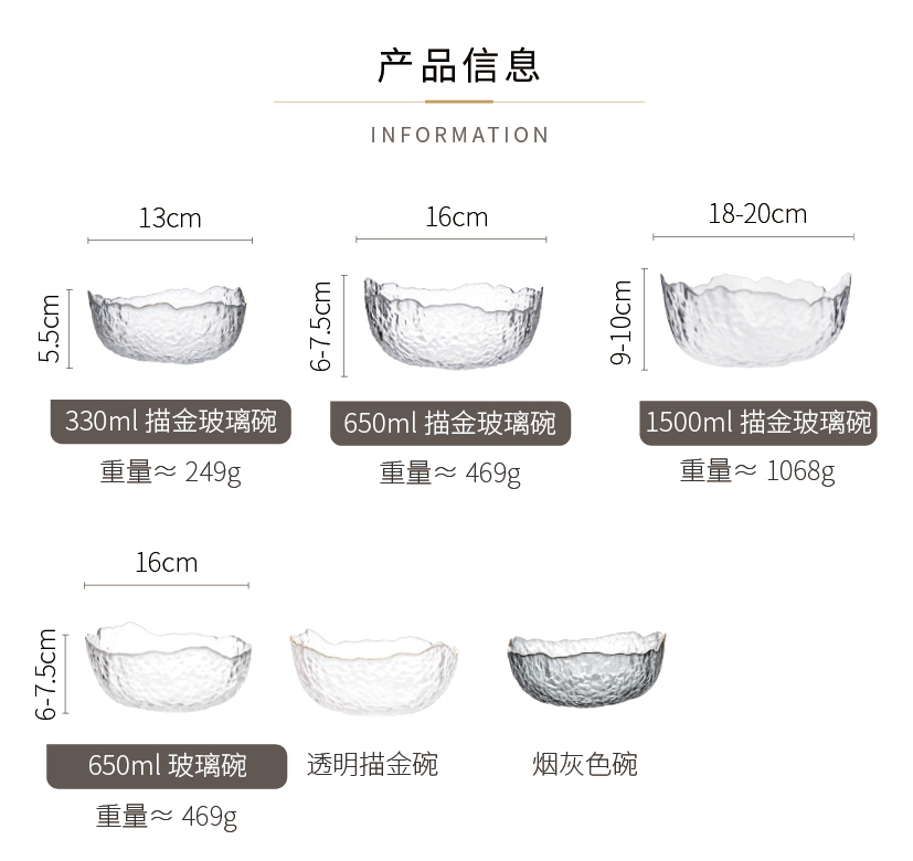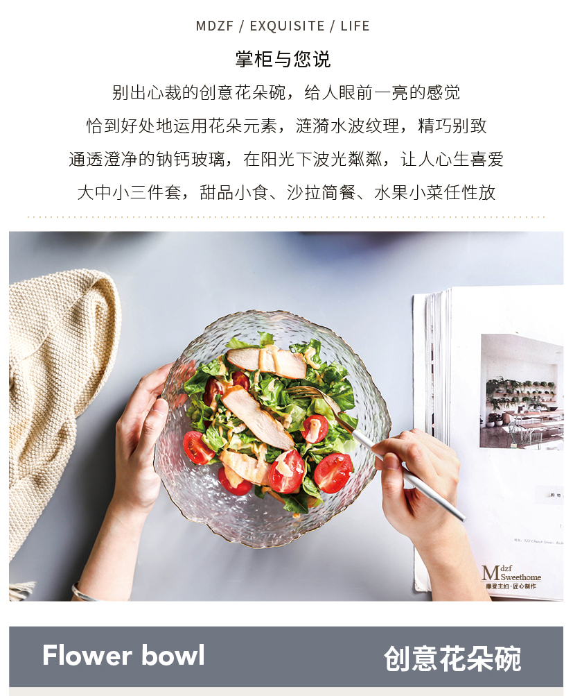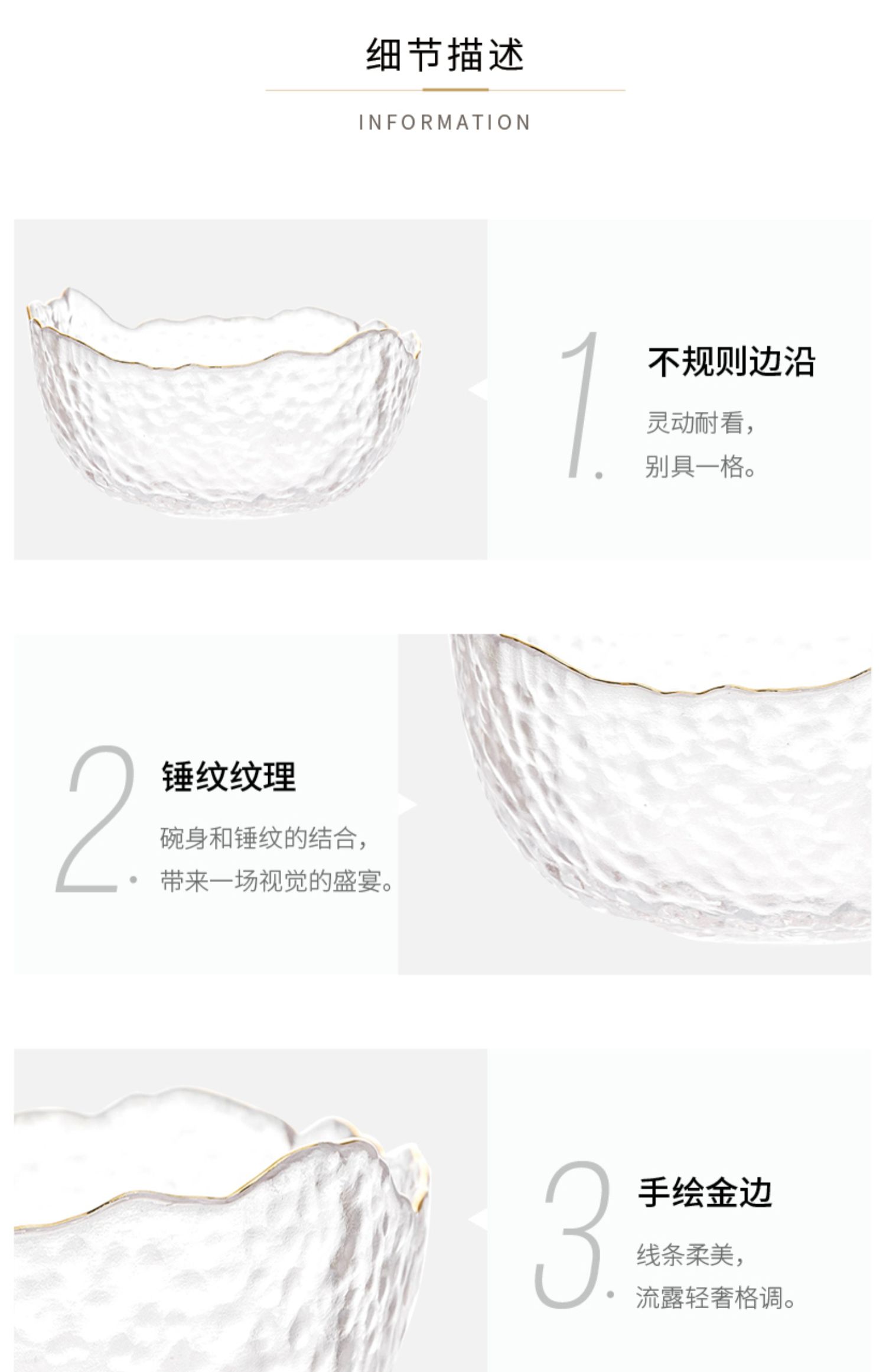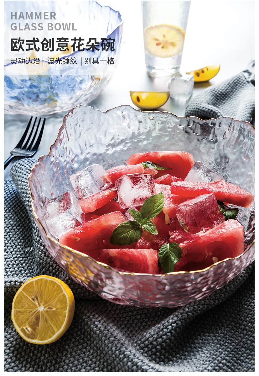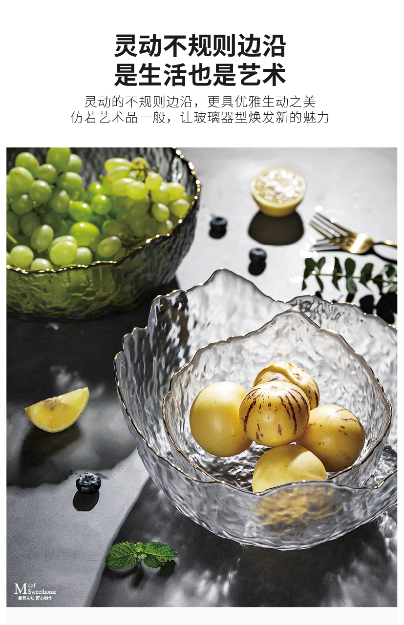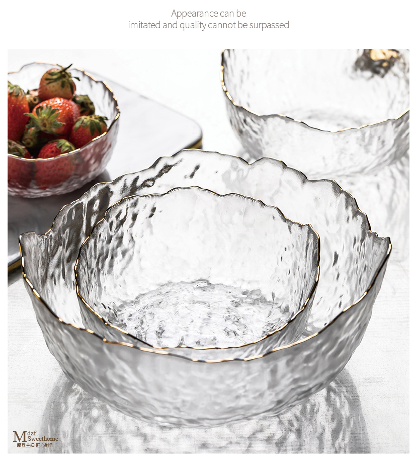 摩登主妇韩版ins风透明玻璃碗家用餐具套装水果甜品沙拉盘金边碗