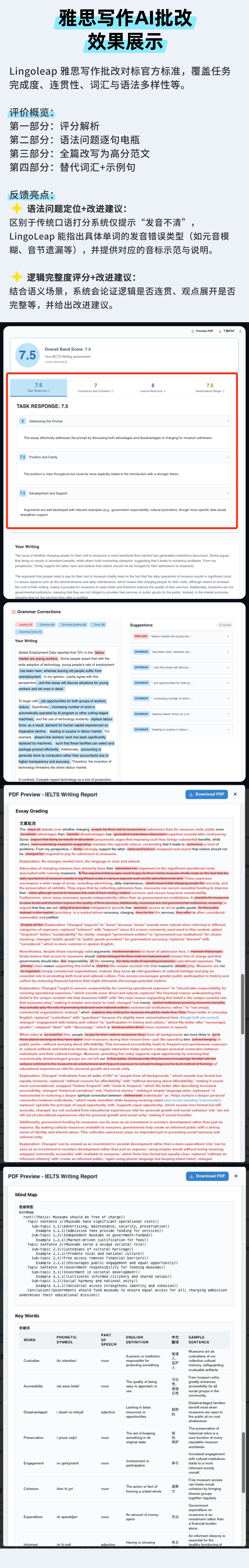 Lingoleap 雅思月度冲刺卡(AI自动批改点评,可练习大作文+小作文+口语Part 1-3)