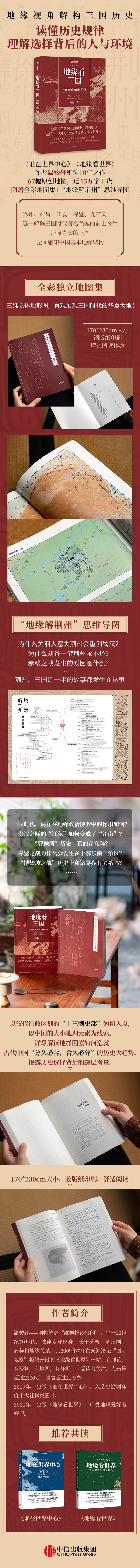 《地缘看三国: 地理如何影响历史选择》 以汉代“十三刺史部”行政区划为切入点,以中国的山脉水系、地形地貌为线索,从地缘理论的视角分析了各地自然环境的优劣长短,解读了三国时代历史脉络的偶然与然,并推而广之、纵横千年,理清中华文明发展延续的地理脉络。作者深入浅出地揭秘了时代英雄、关键决策背后的自然因素,详尽解读地缘因素如何造就了古代中国“分久合,合久分“的历史大趋势。