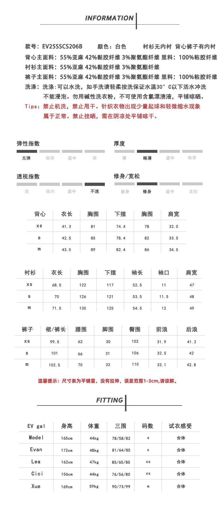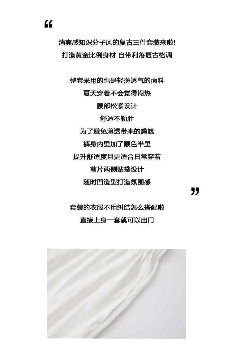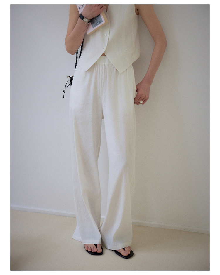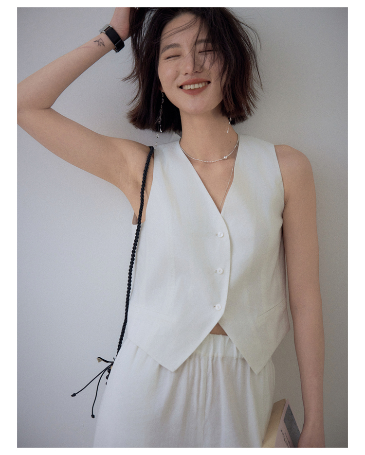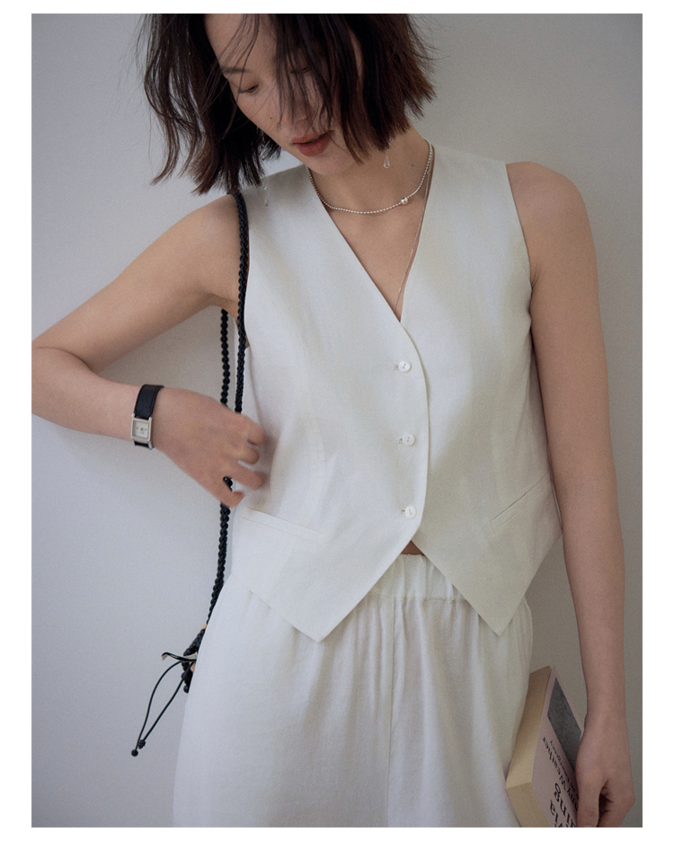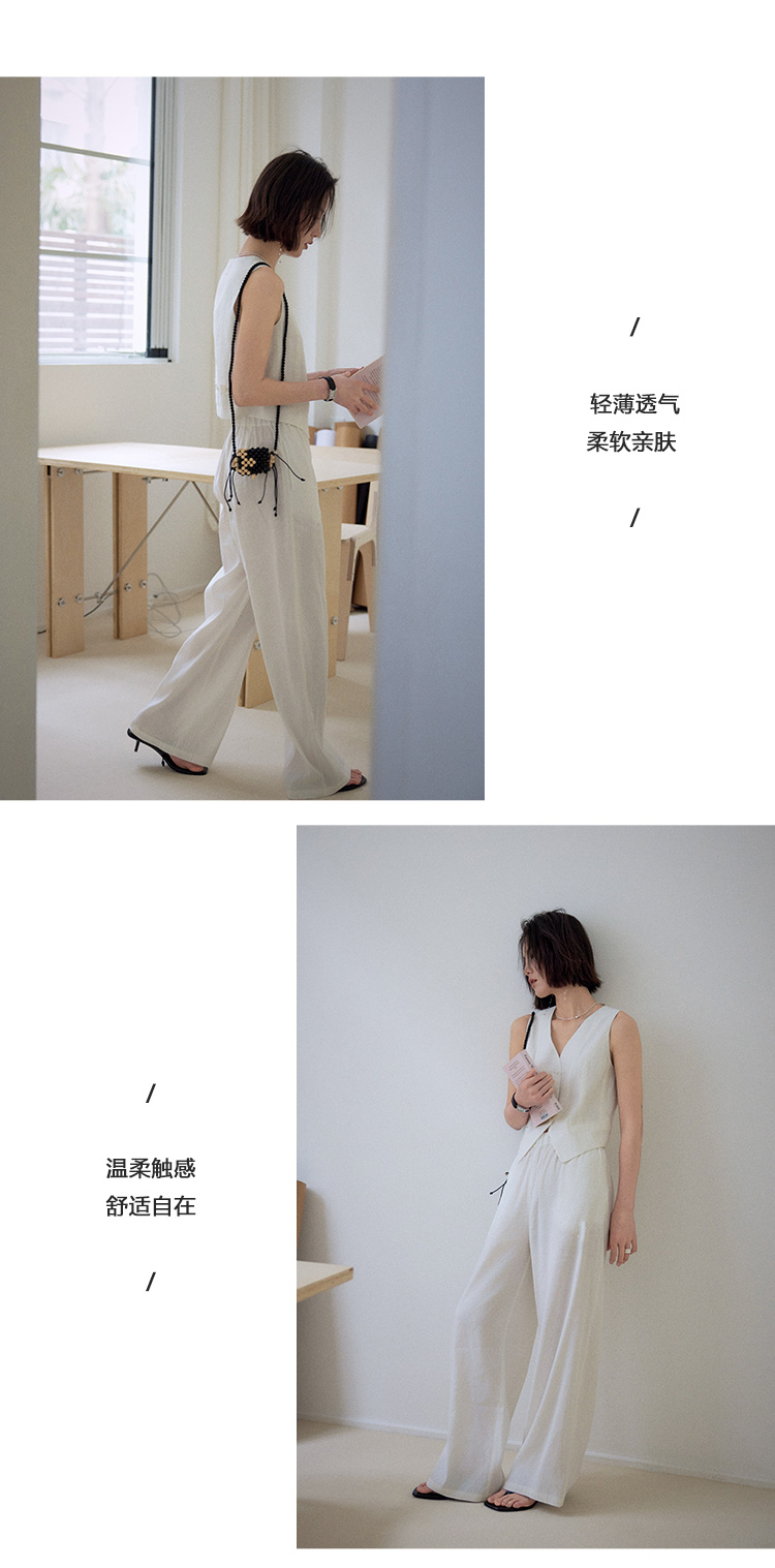 Even Vintage|亚麻混纺 简约宽松基础衬衫清爽感马甲白色长裤套装