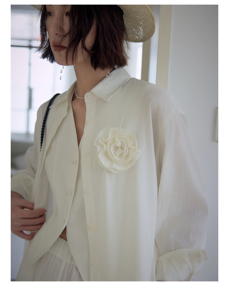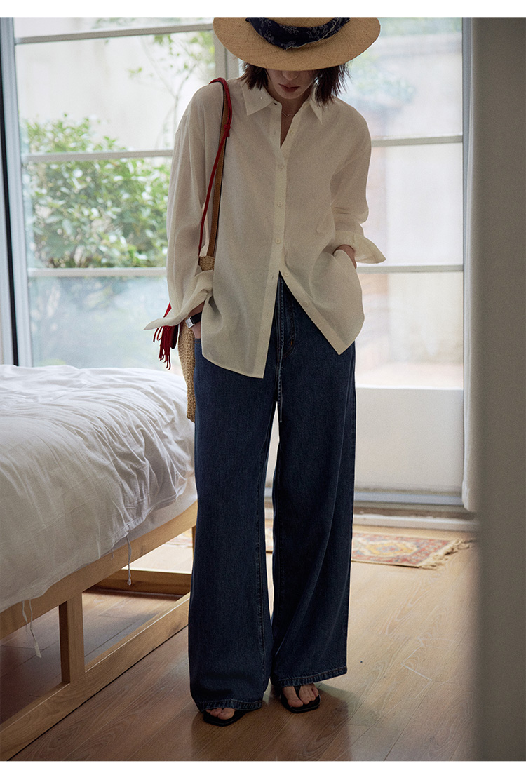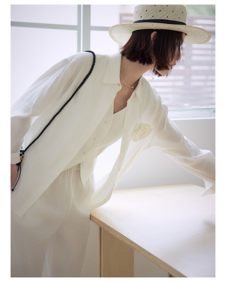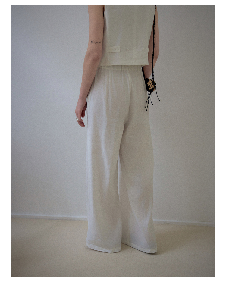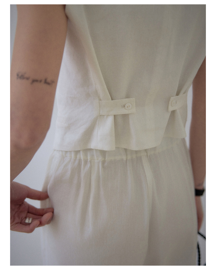 Even Vintage|亚麻混纺 简约宽松基础衬衫清爽感马甲白色长裤套装