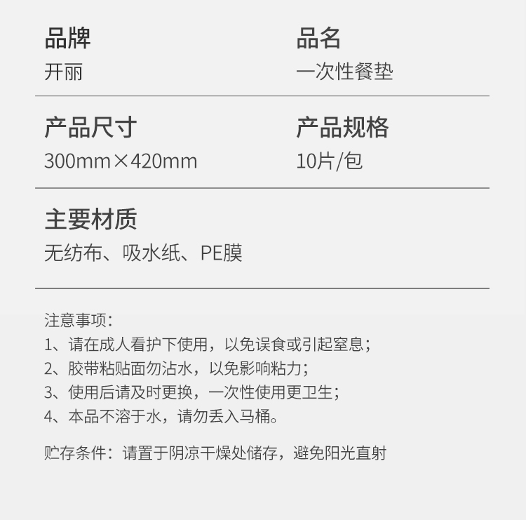 30片丨开丽一次性餐垫 防水防油,独立装方便携带