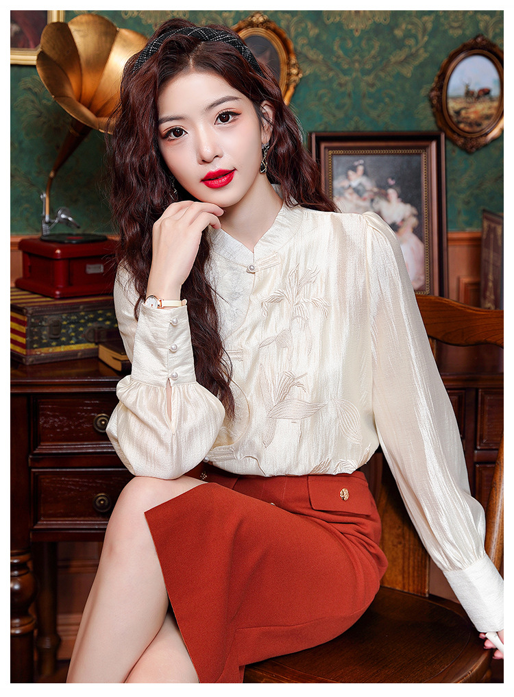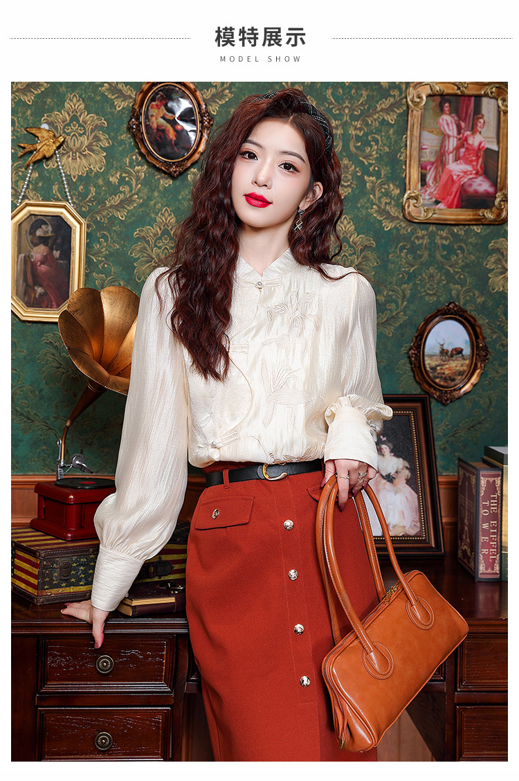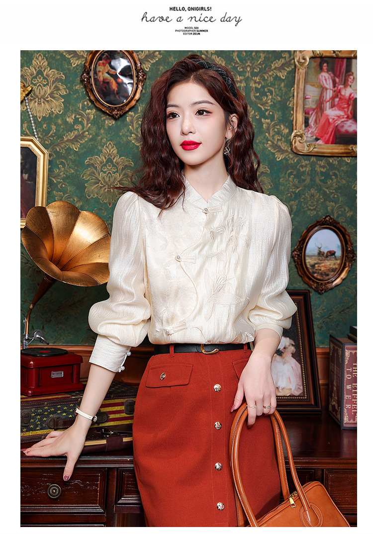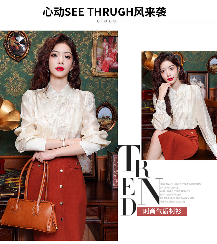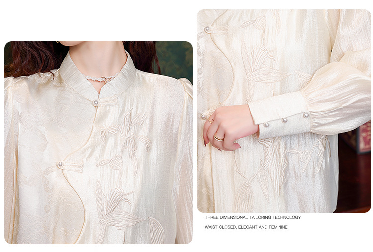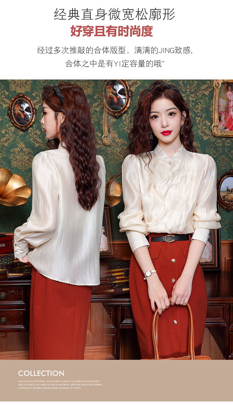 KQL 433H8869中式盘扣立领雪纺衬衫洋气减龄国风别致衬衣