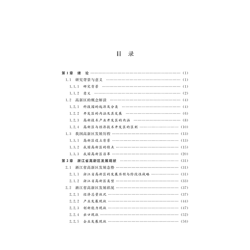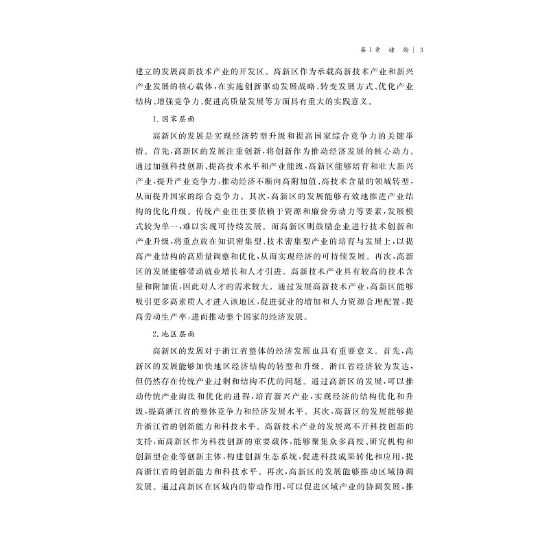 本书解读了高新区的概念,介绍世界科技园区的起源和分类,阐述了开发区和高新区的内涵,追溯了我国高新区的发展历程。同时,研究浙江省高新区发展历程、阶段性战略等,全面分析了浙江高新区发展状况。基于高新区高质量发展水平的内涵和特点,从创新能力与创业活力、产业升级与结构优化、开放联动和要素配置、绿色发展与生态宜居四个维度研究并构建浙江省高新区高质量发展水平评价体系,在近年浙江高新区监测数据基础上,开展具体测度,并对测度结果进行分析。从理论和实证两个角度分析研发、政策、人力等影响浙江省高新区高质量发展水平的因素。开展浙江省高新区高质量发展对区域发展的影响效应分析,并提出进一步推动高新区发展的对策建议。