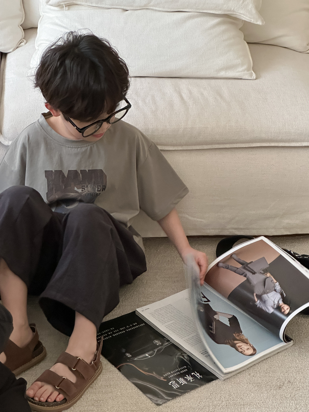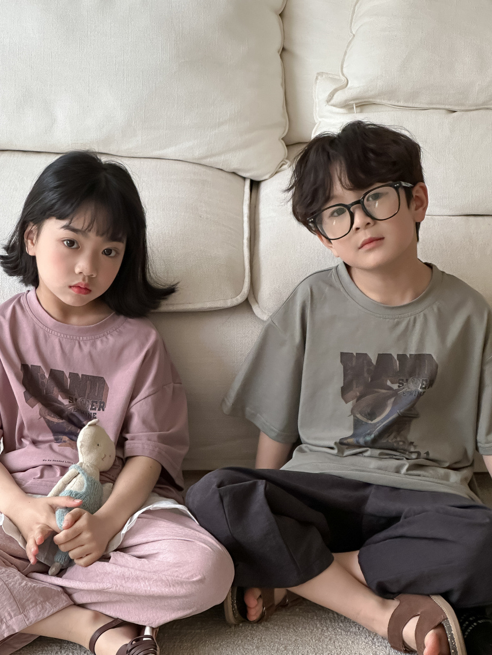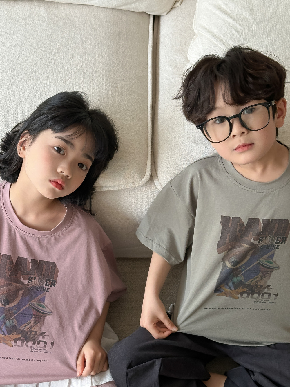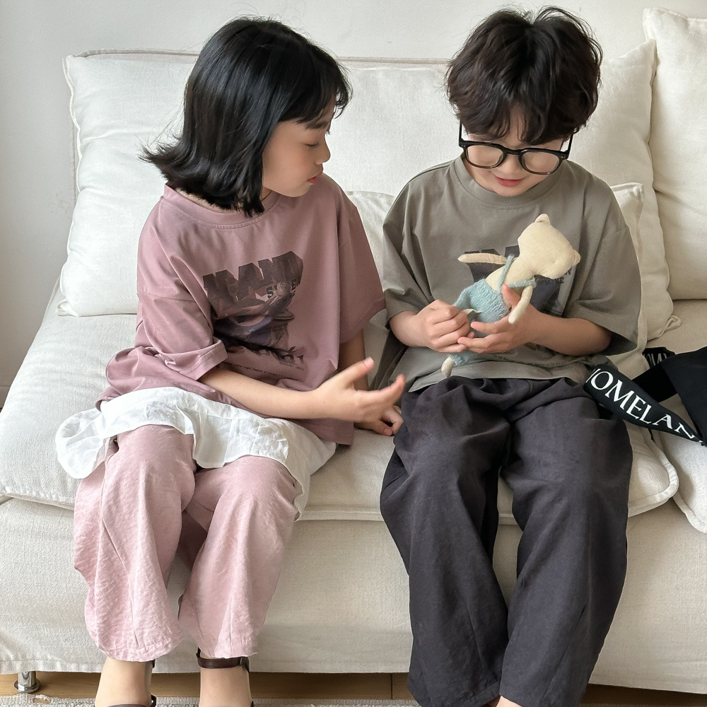 【卡通字母印花,孩子喜欢的可爱风!】2024夏男女童韩版卡通字母印花短袖,儿童圆领休闲五分袖上衣童T恤!-ry