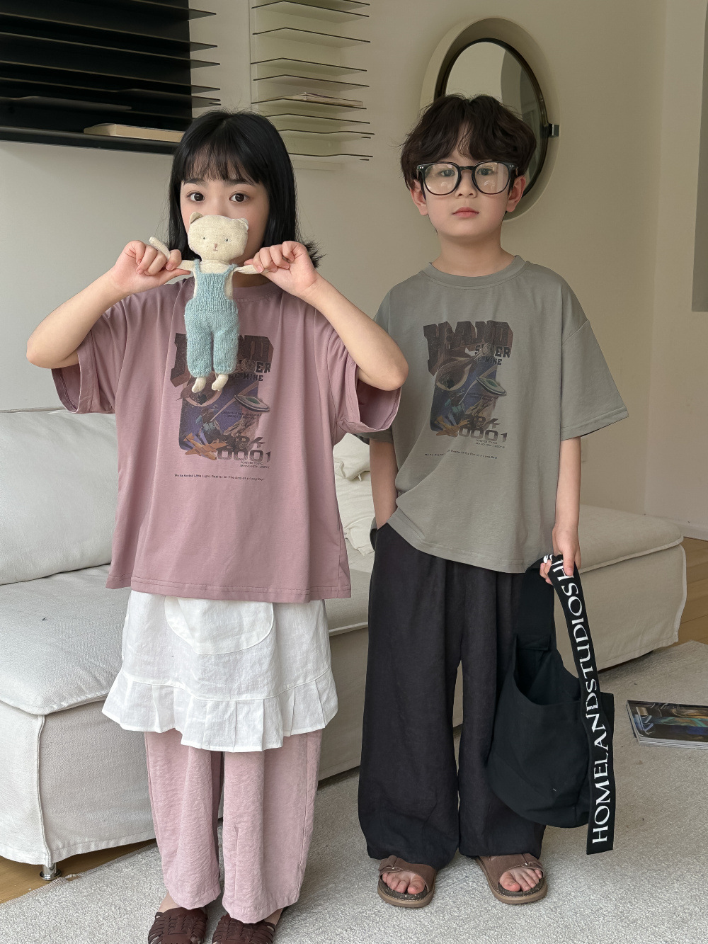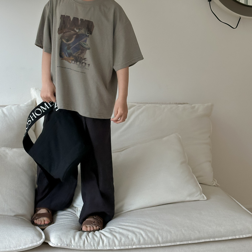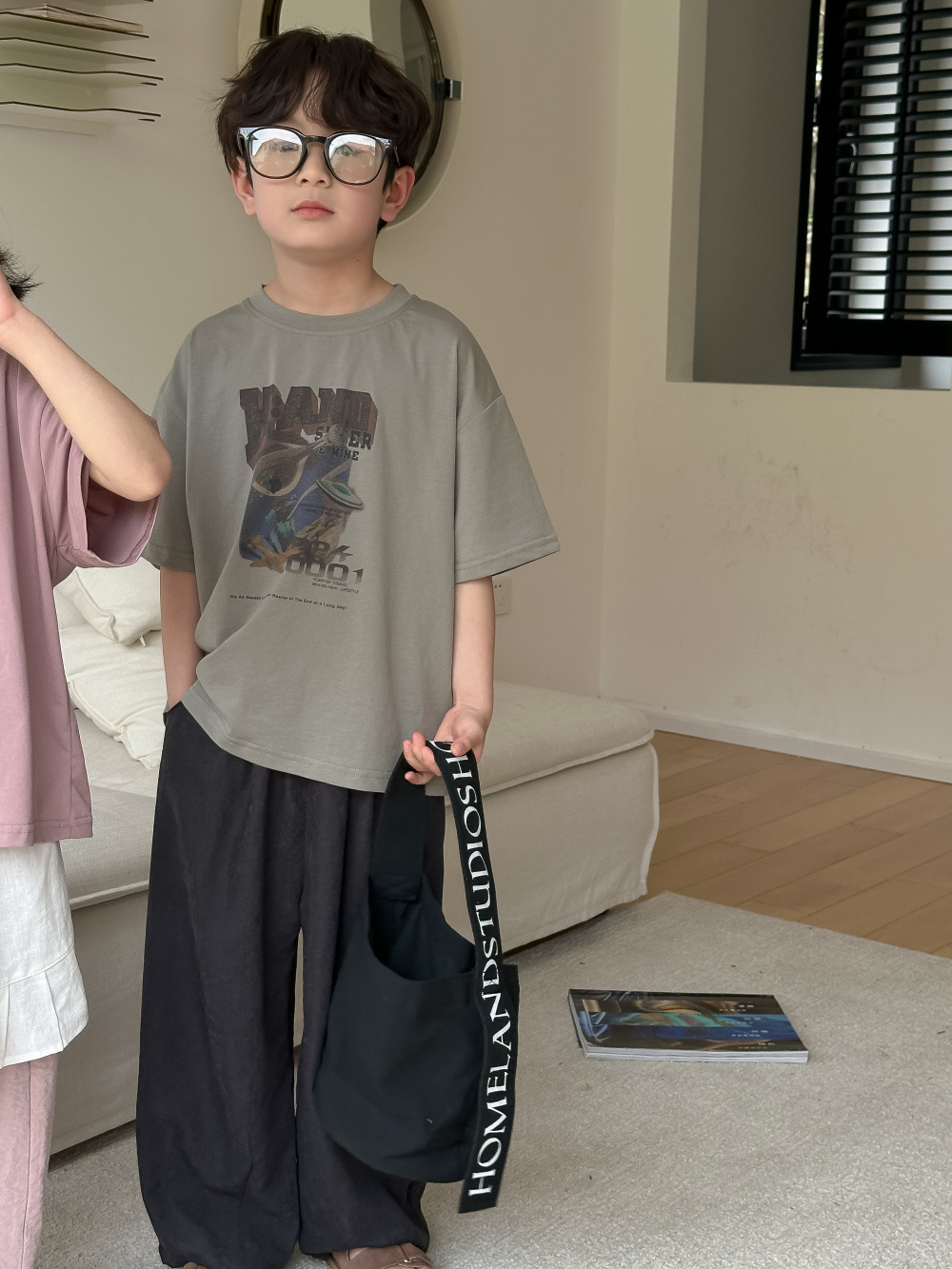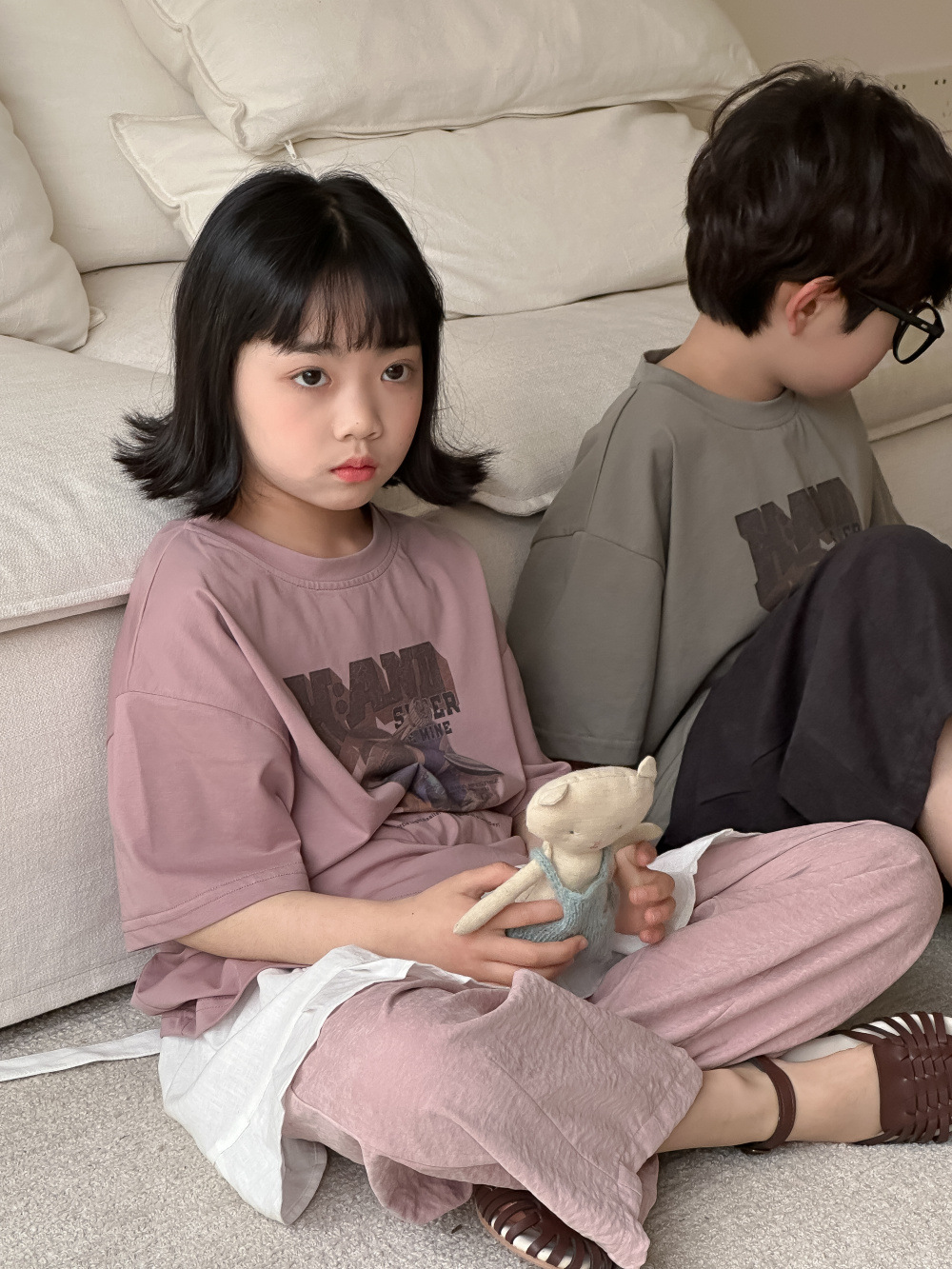【卡通字母印花,孩子喜欢的可爱风!】2024夏男女童韩版卡通字母印花短袖,儿童圆领休闲五分袖上衣童T恤!-ry