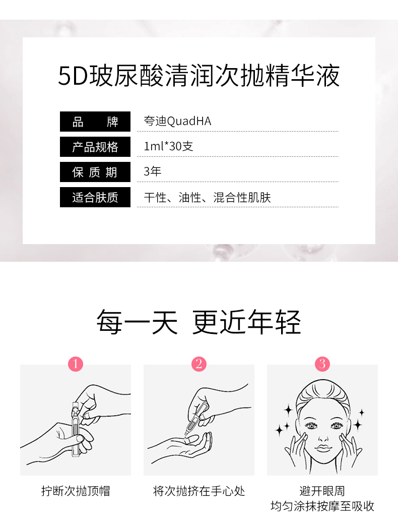 夸迪5D玻尿酸清润次抛补水精华液30ml