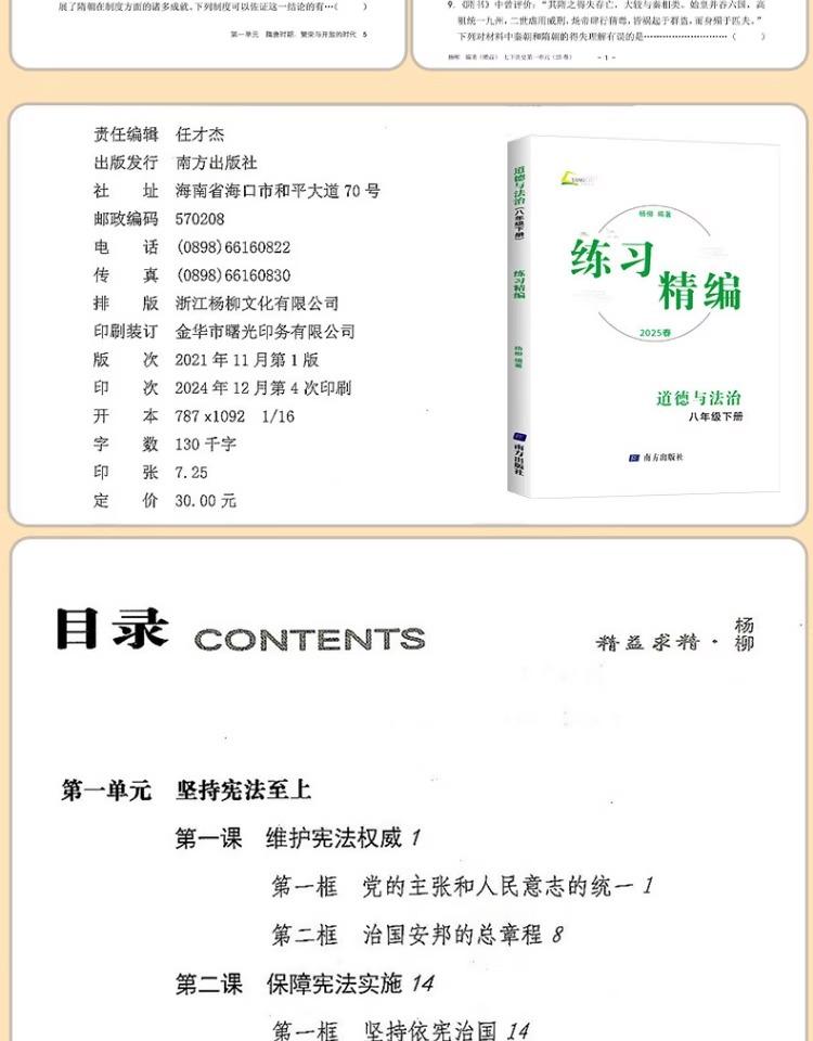 2025秋新版练习精编杨柳上册中国历史道德与法治地理社会