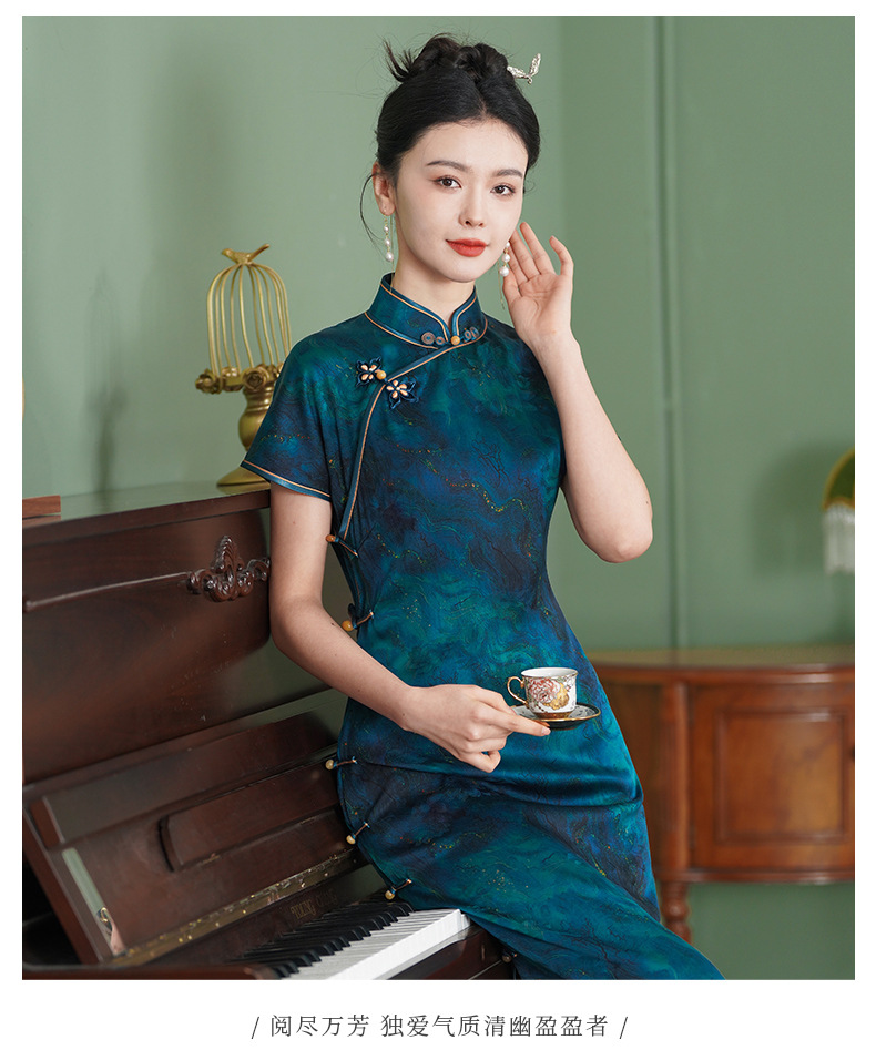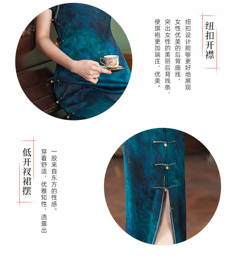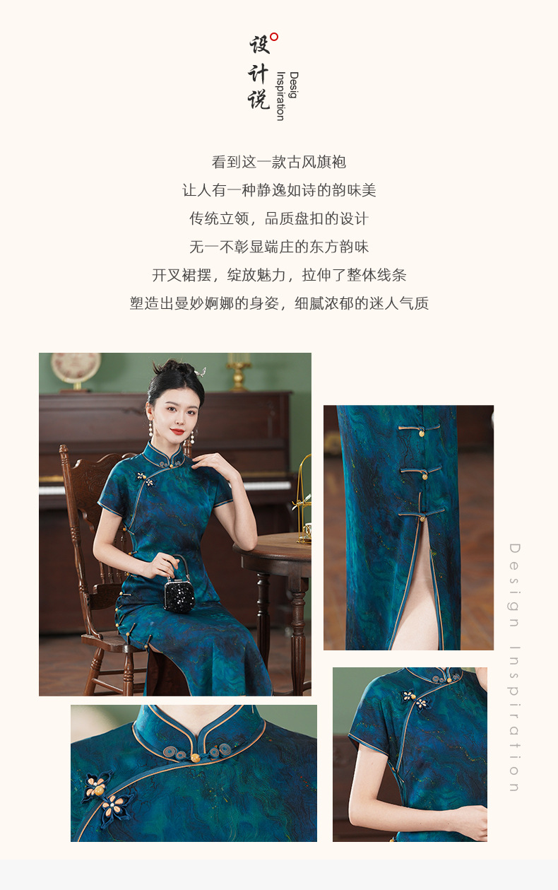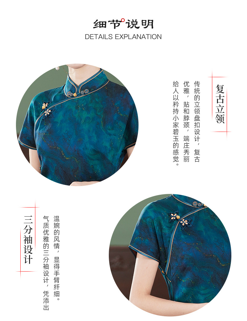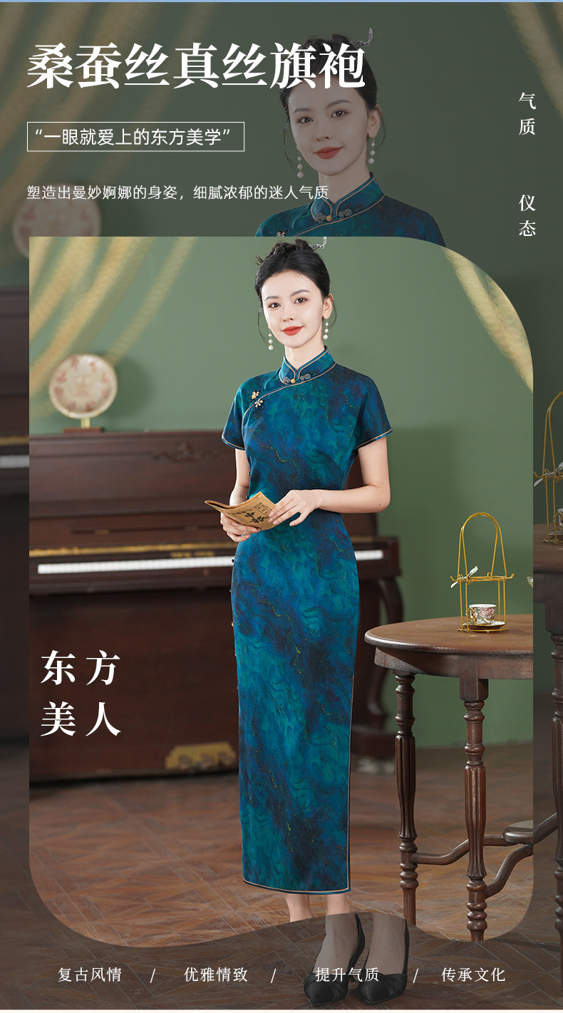 TZRY-新款重磅香云纱真丝桑蚕丝复古旗袍斜襟真襟旗袍裙日常优雅旗袍