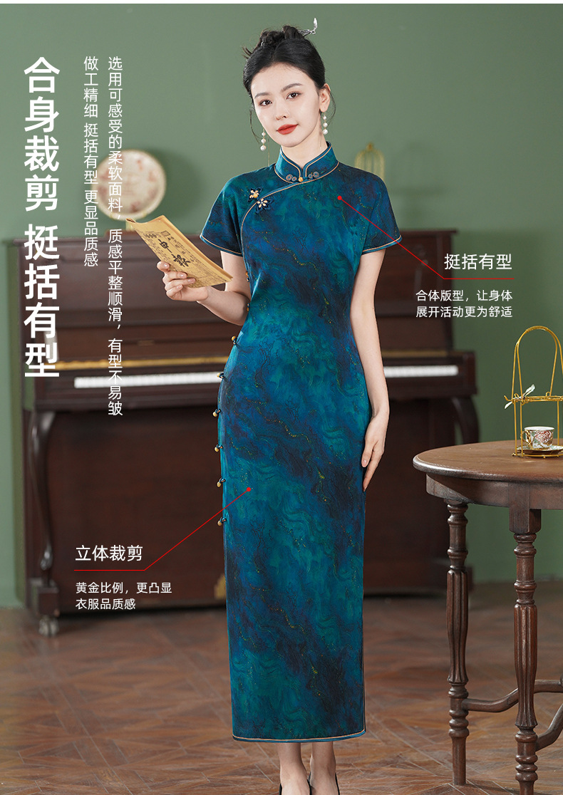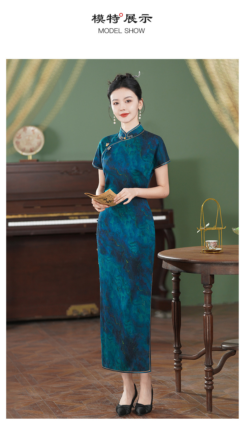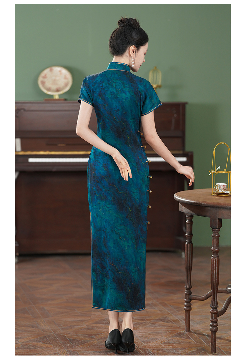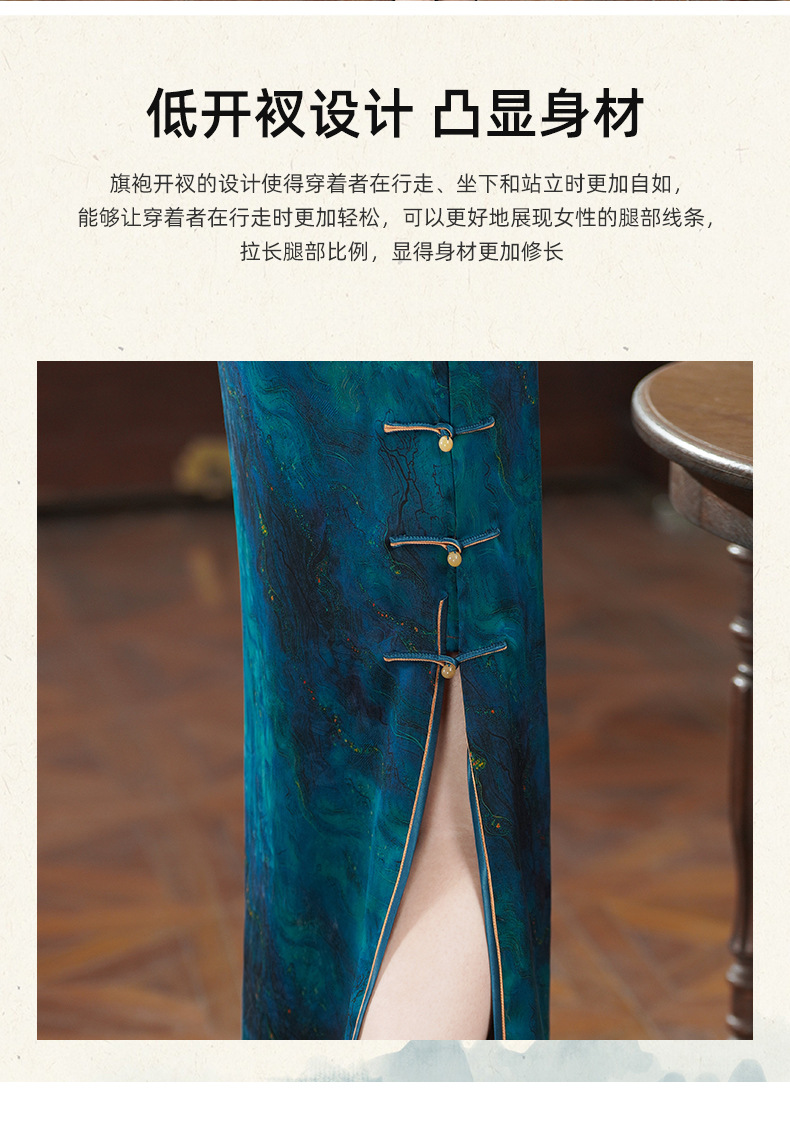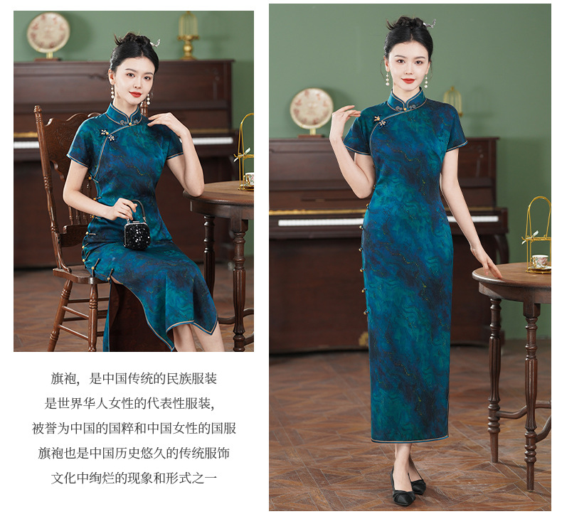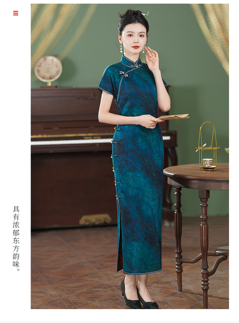 TZRY-新款重磅香云纱真丝桑蚕丝复古旗袍斜襟真襟旗袍裙日常优雅旗袍
